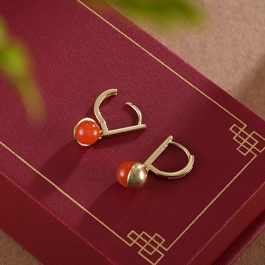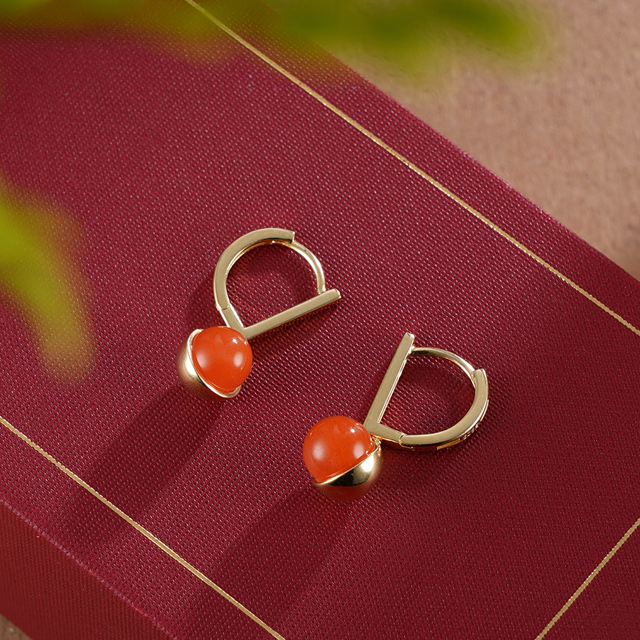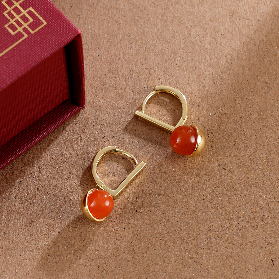子佩集S925银【燃藻】耳环【AS00419】红玛瑙镀金扣环耳圈2402