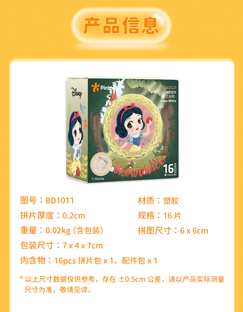 16片徽章拼图塑料拼图 BD1011 公主系列-Snow White