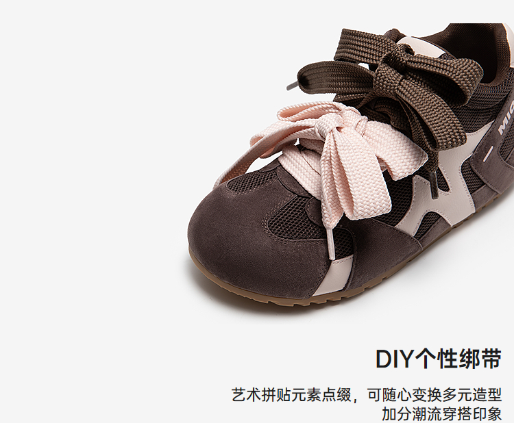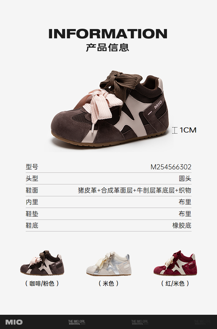 MIO米奥薄底鹦鹉德训鞋女高帮运动拼色双鞋带休闲鞋M254566302
