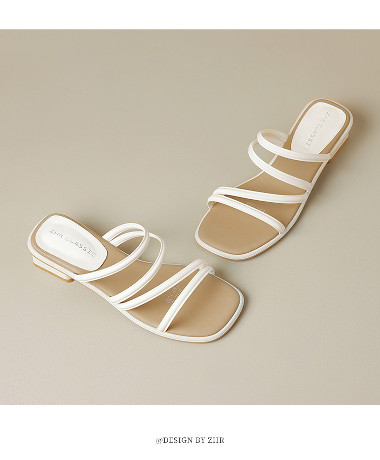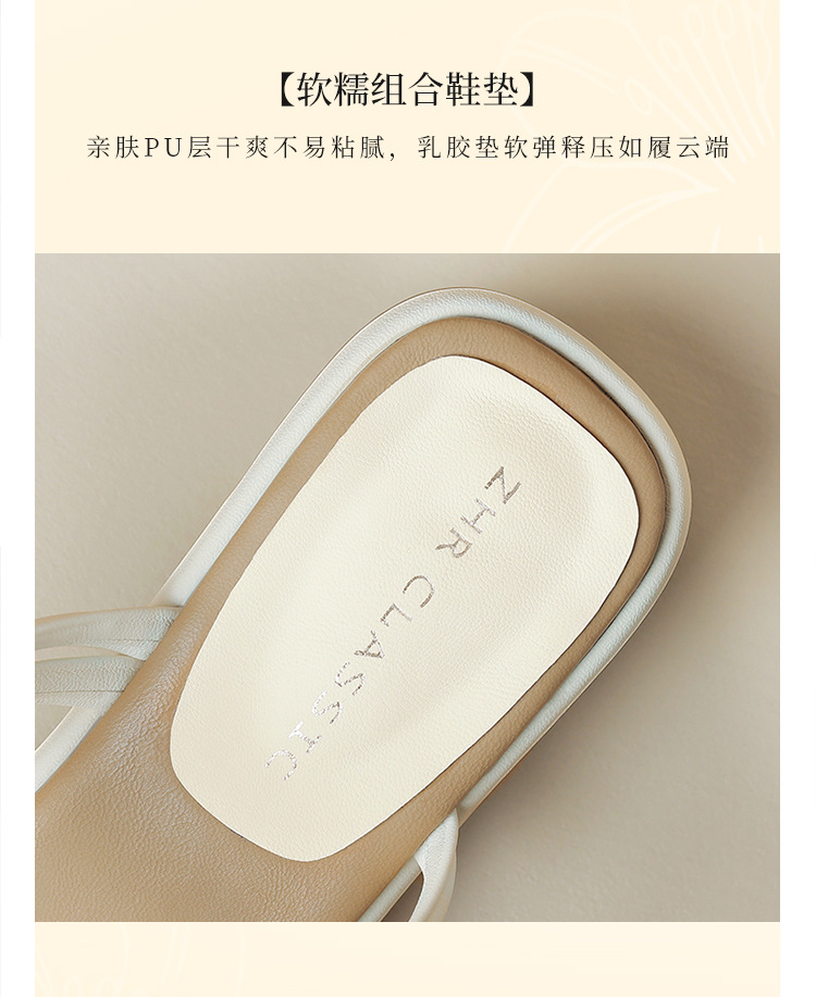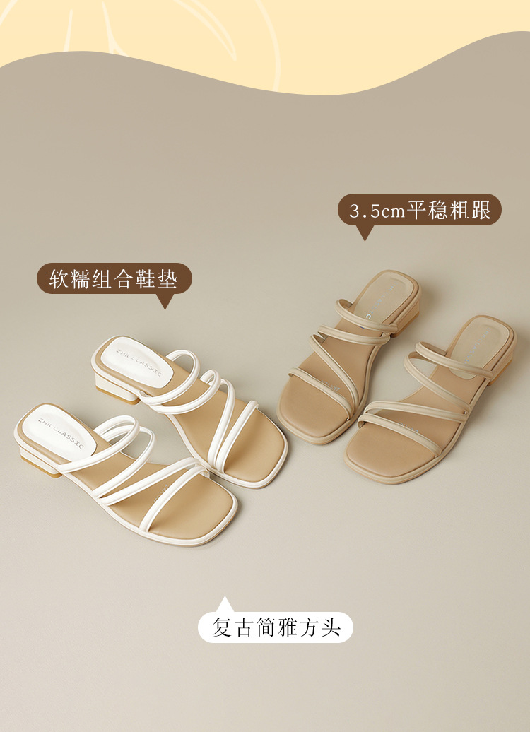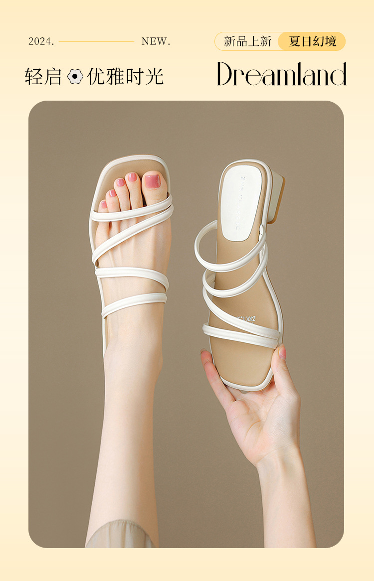 ZHR则则粗跟拖鞋2024夏季新款罗马休闲外穿沙滩百搭法式绕带小凉