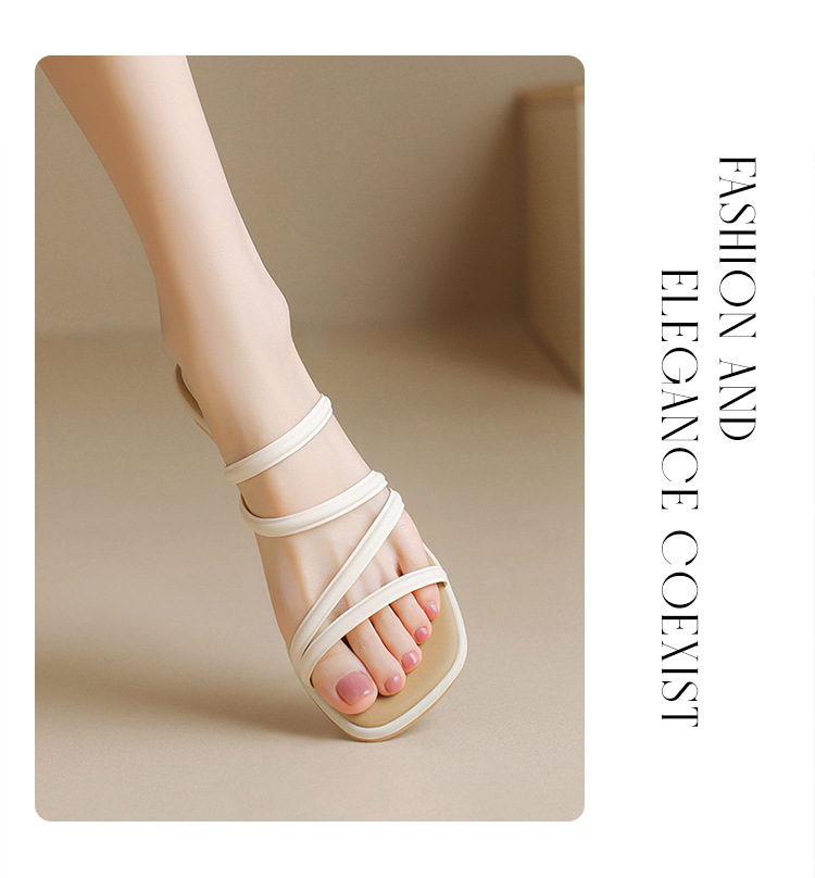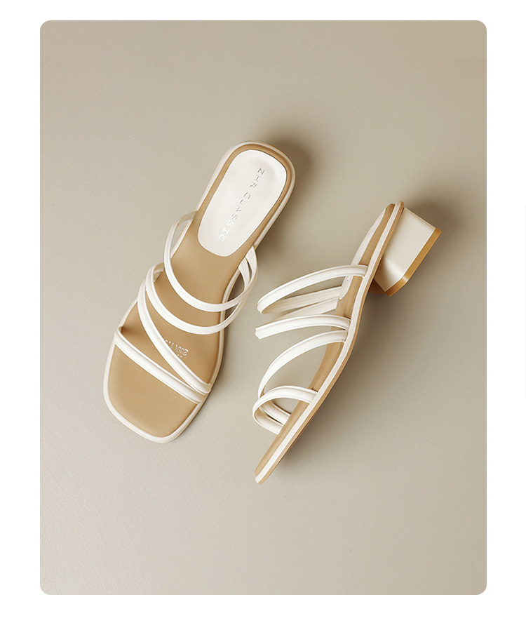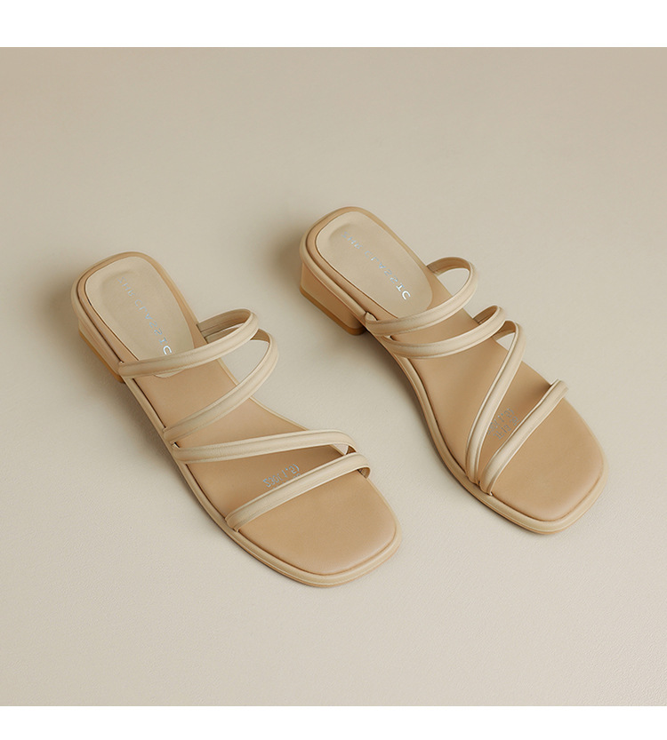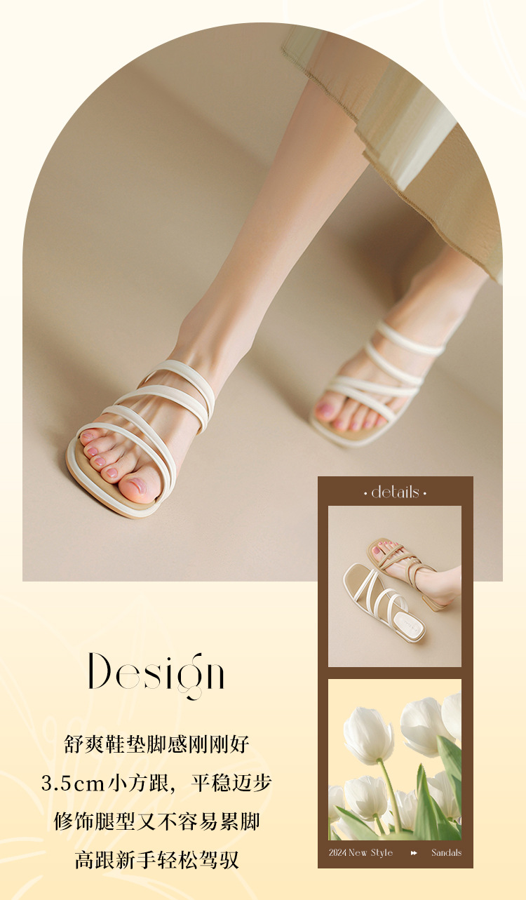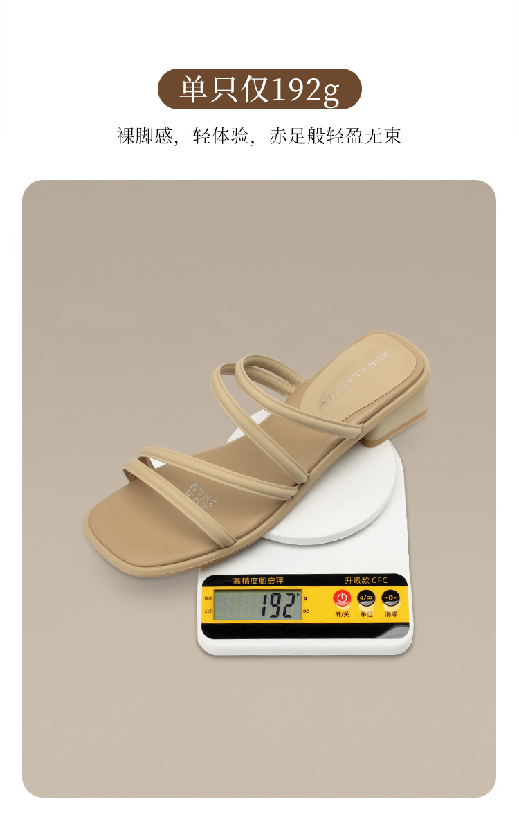 ZHR则则粗跟拖鞋2024夏季新款罗马休闲外穿沙滩百搭法式绕带小凉