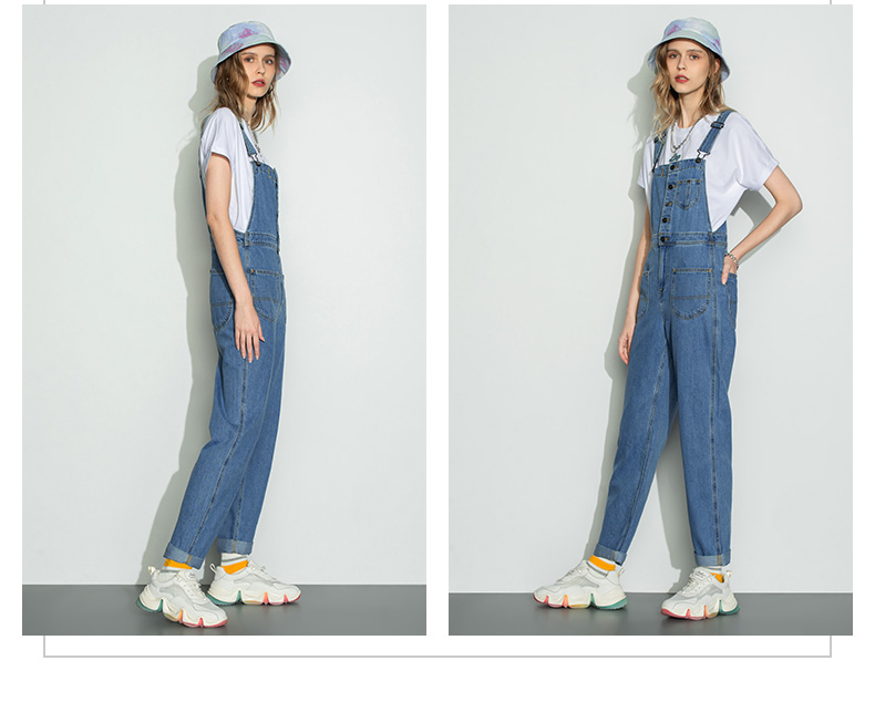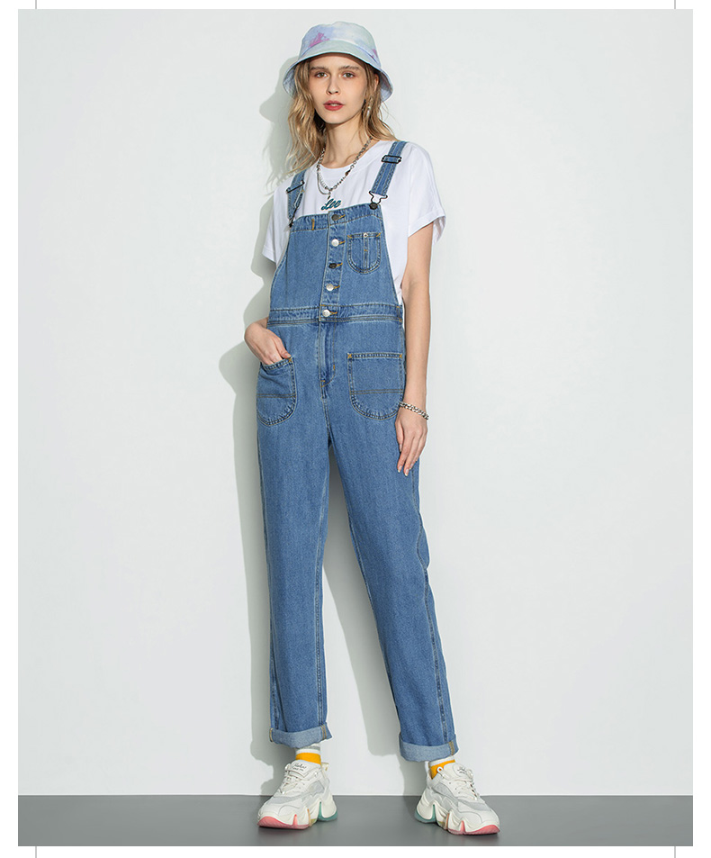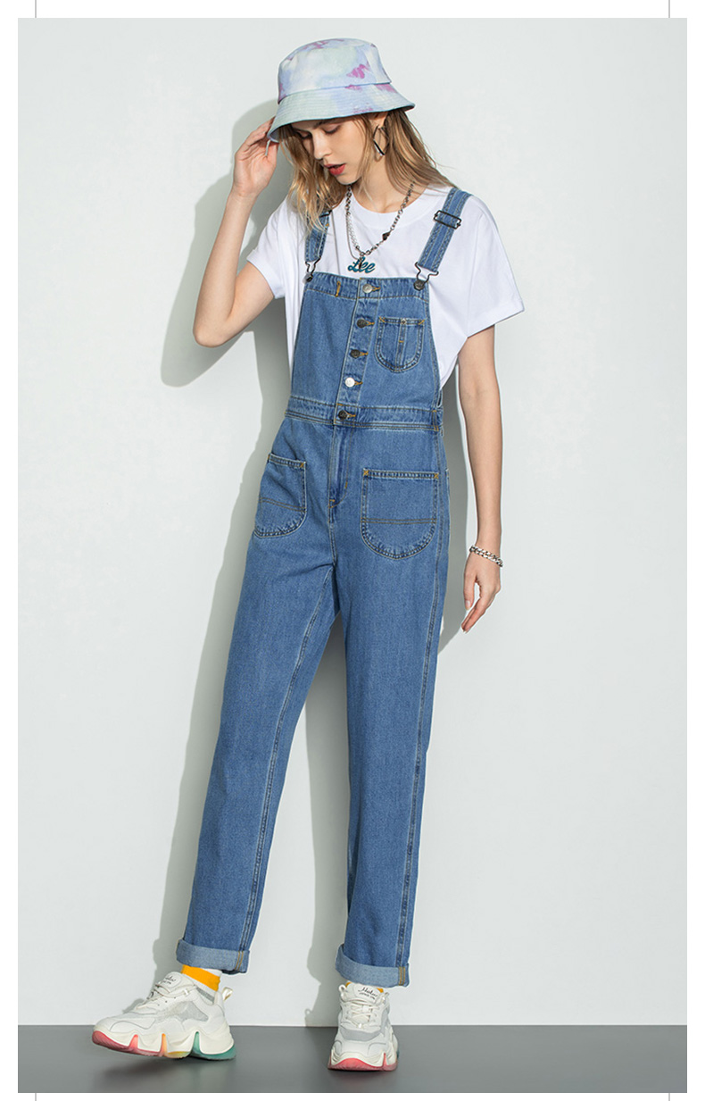 Lee商场同款22秋季新品中蓝色女款背带牛仔长裤LWB0043565PN-351