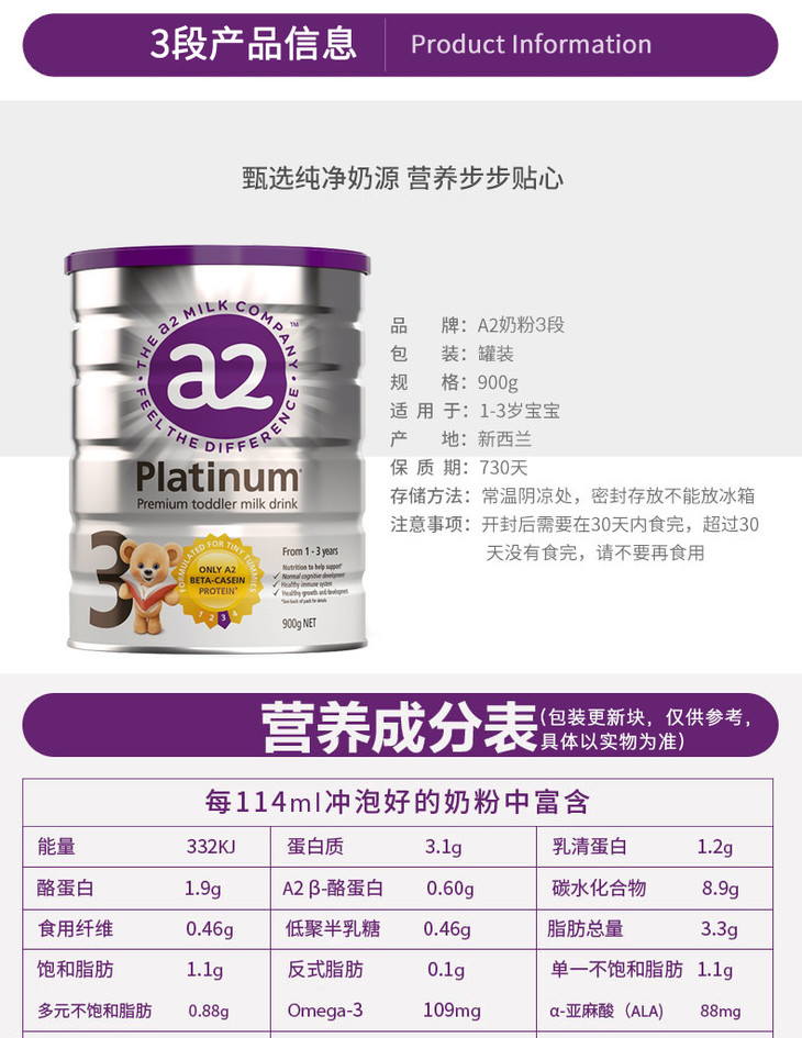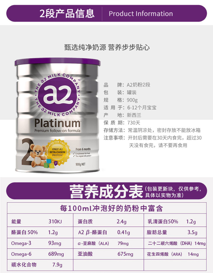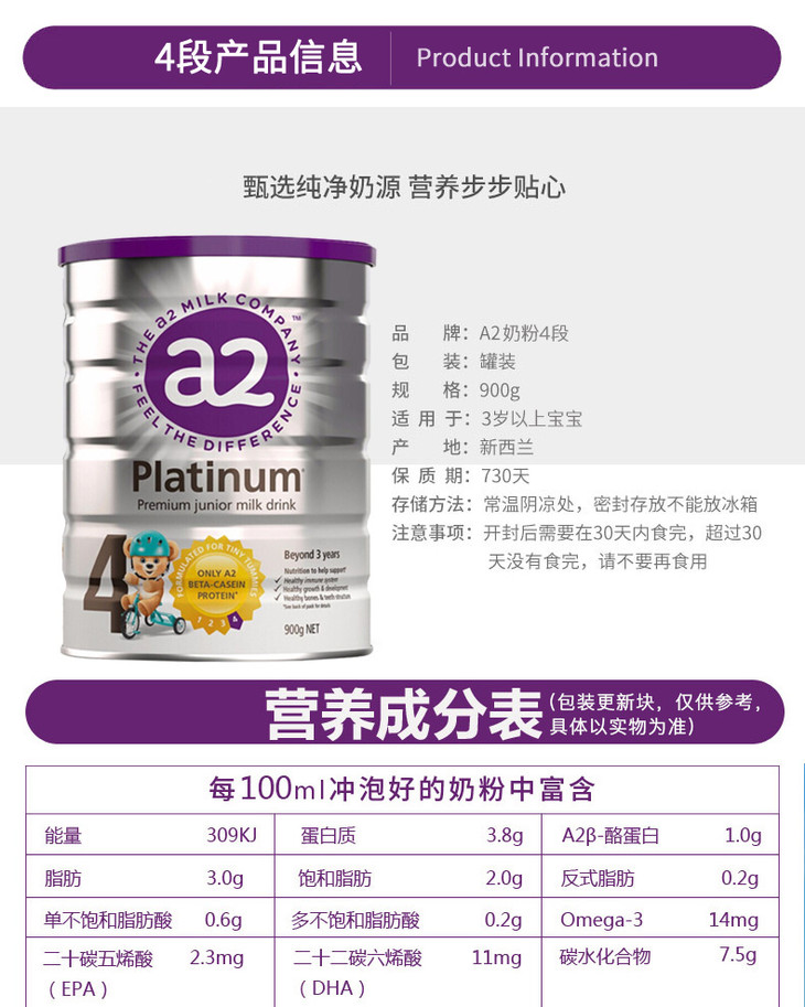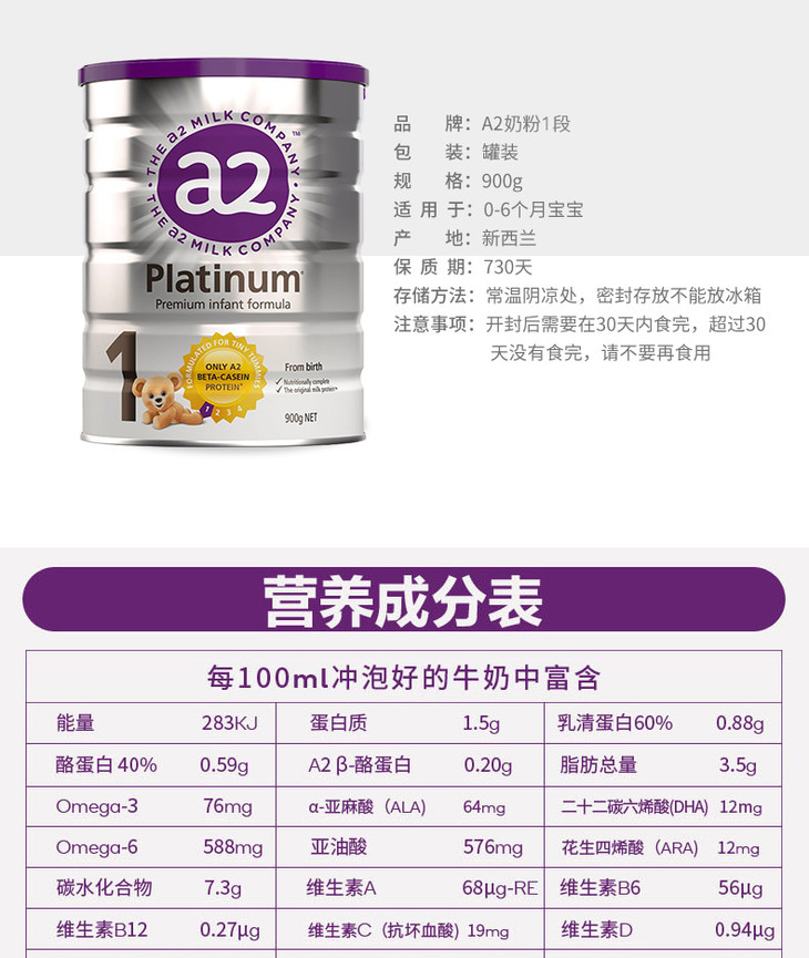 【澳洲直邮】澳洲a2 1/2/3/4段900克罐装婴幼儿配方奶粉全程空运直邮