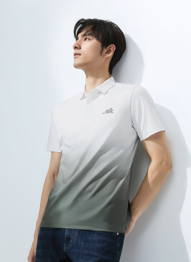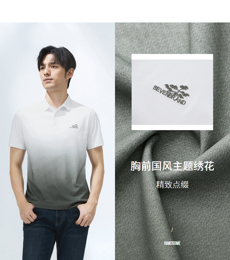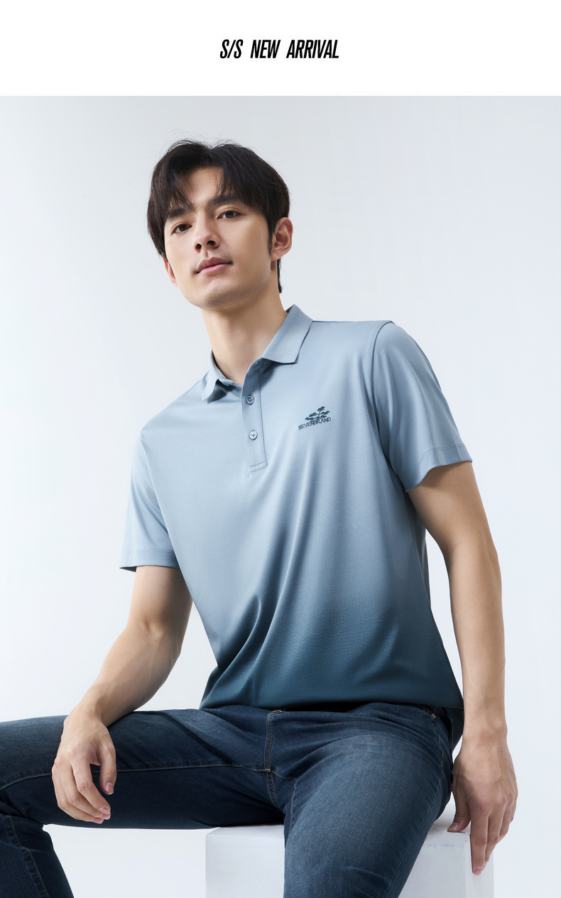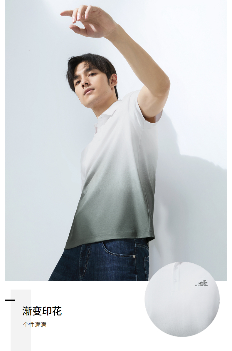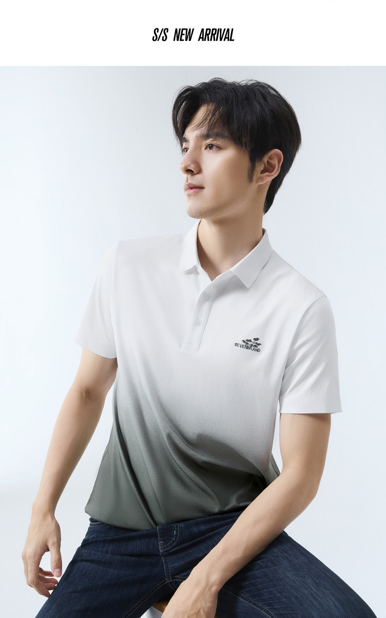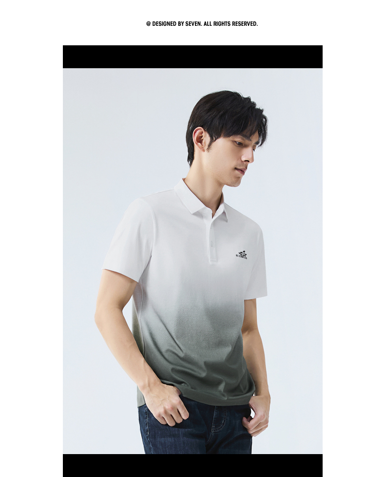 【液氨免烫/国风渐变印花】柒牌纯棉polo短袖男夏季新款翻领上衣