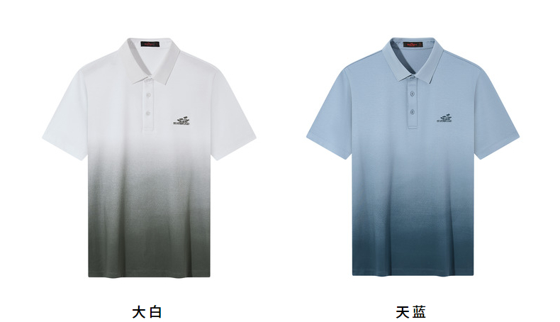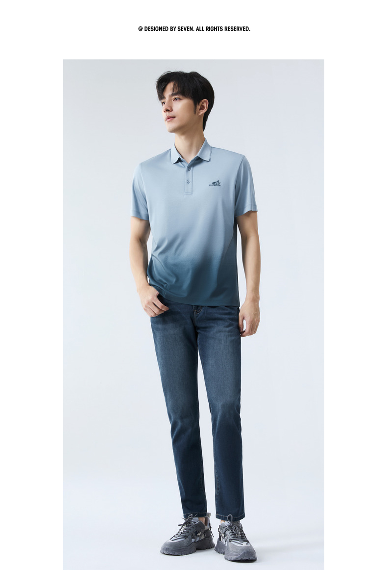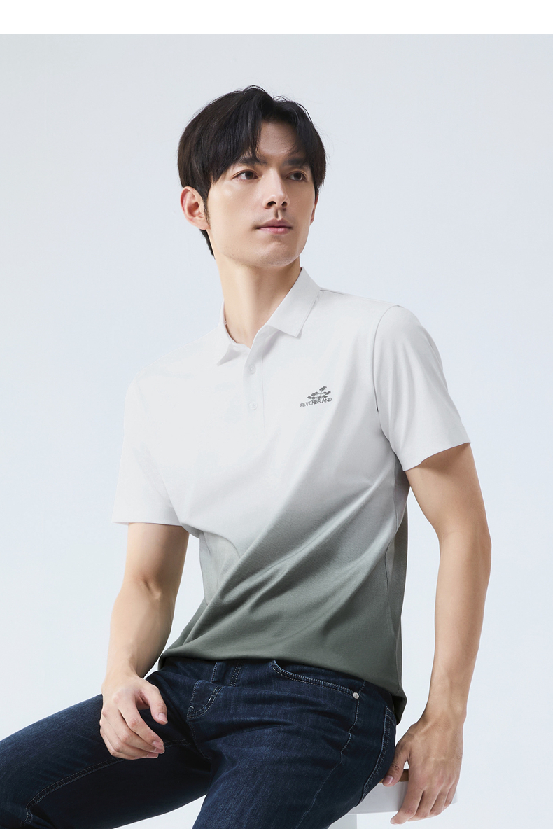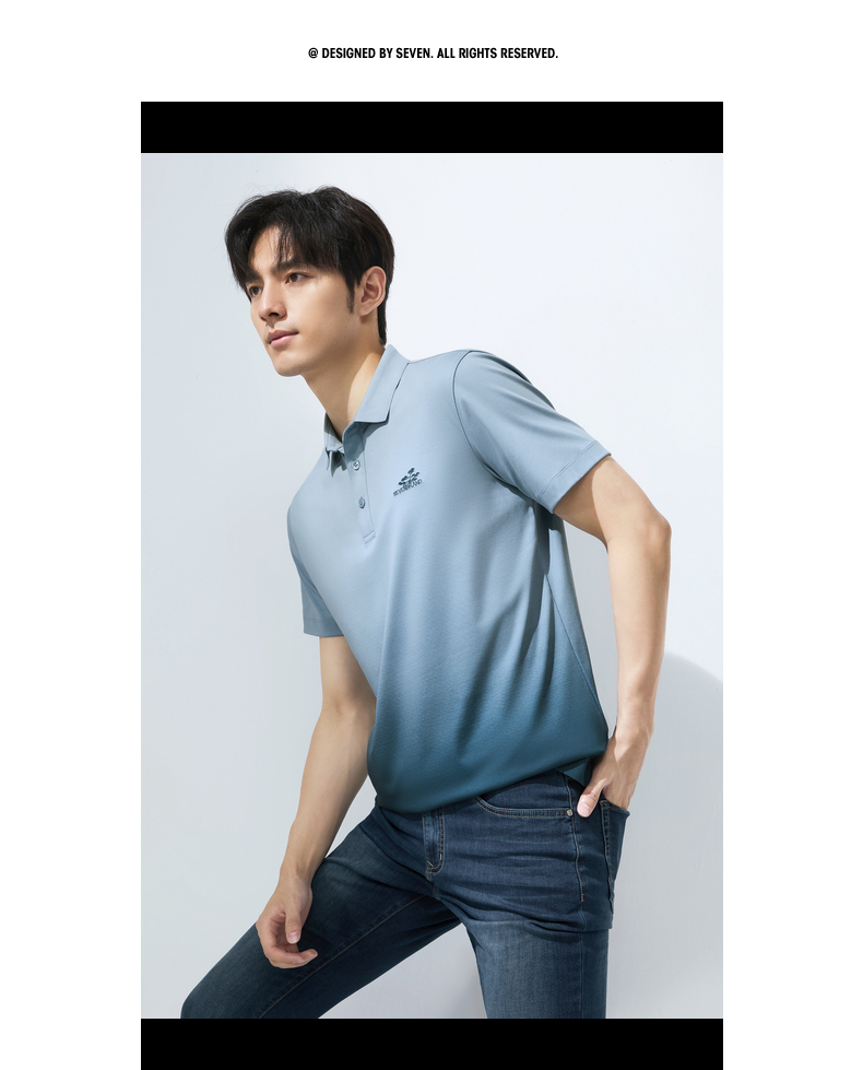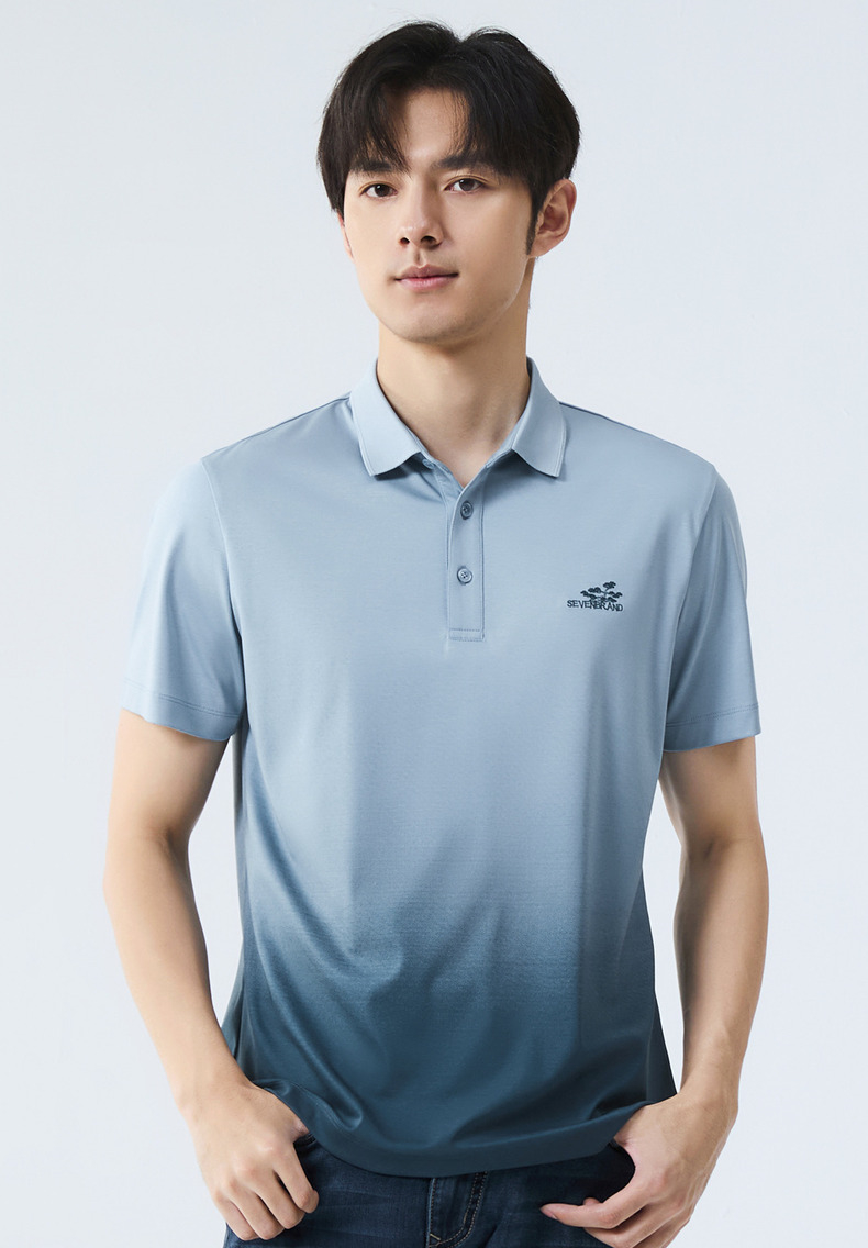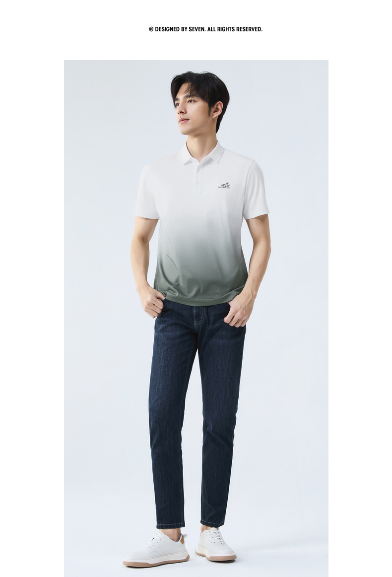 【液氨免烫/国风渐变印花】柒牌纯棉polo短袖男夏季新款翻领上衣