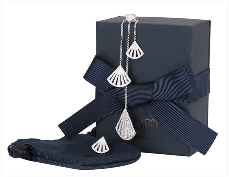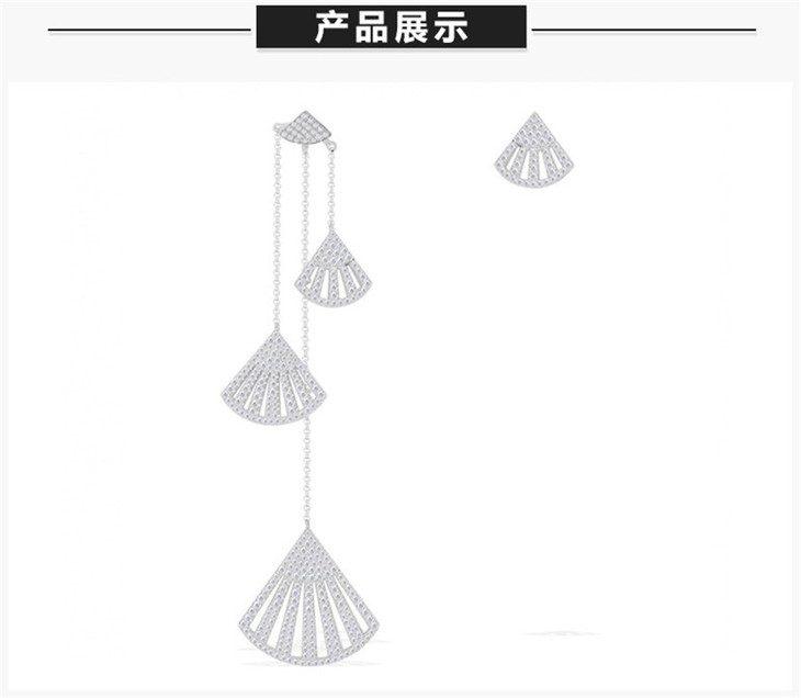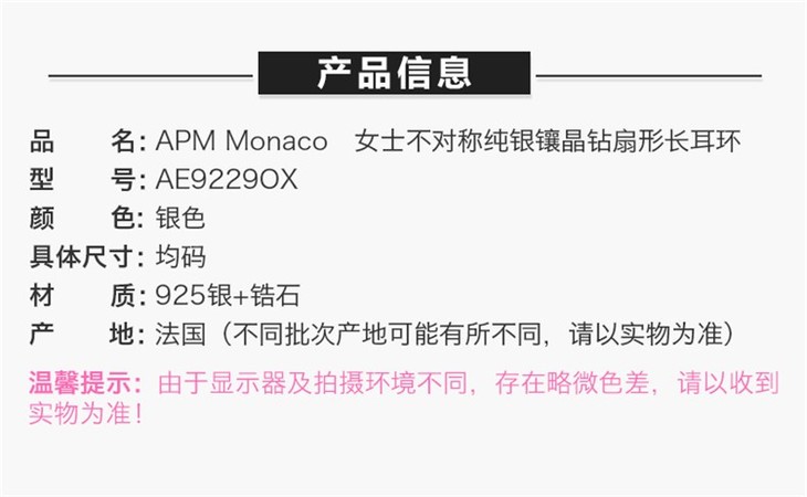 【品牌授权】【明星同款】APM MONACO 不对称纯银镶晶钻扇形长耳环 AE9229OX