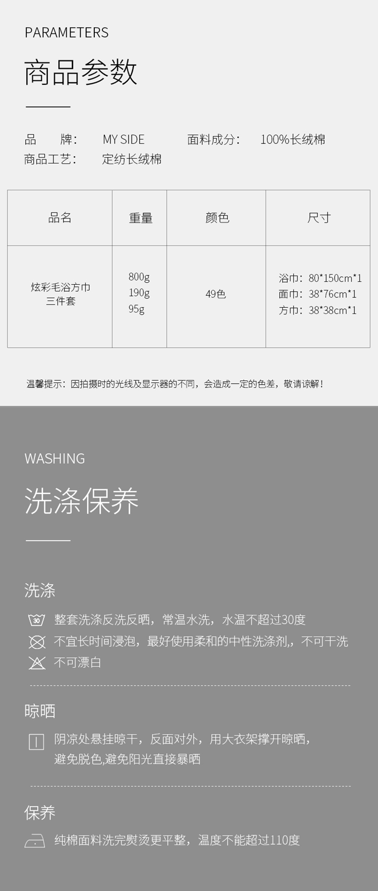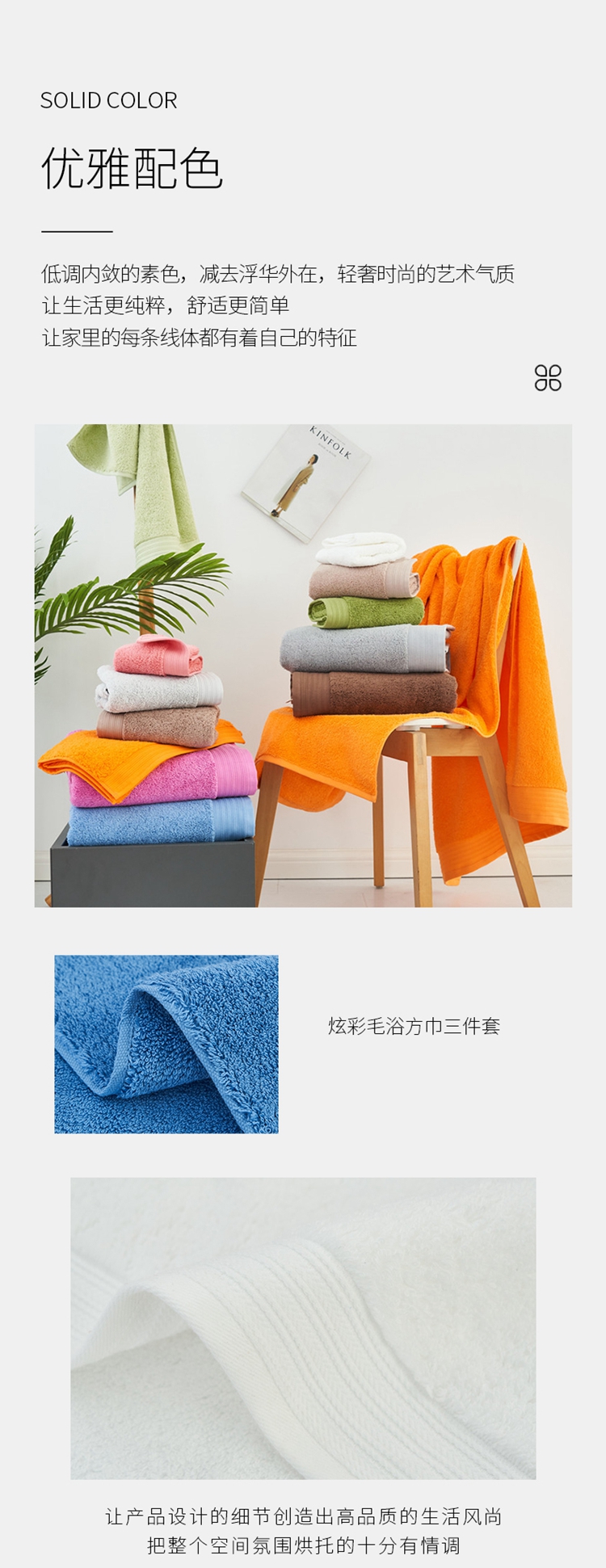 炫彩系列全棉毛巾浴巾方巾三件套 毛巾套装 精梳棉纱柔软亲肤