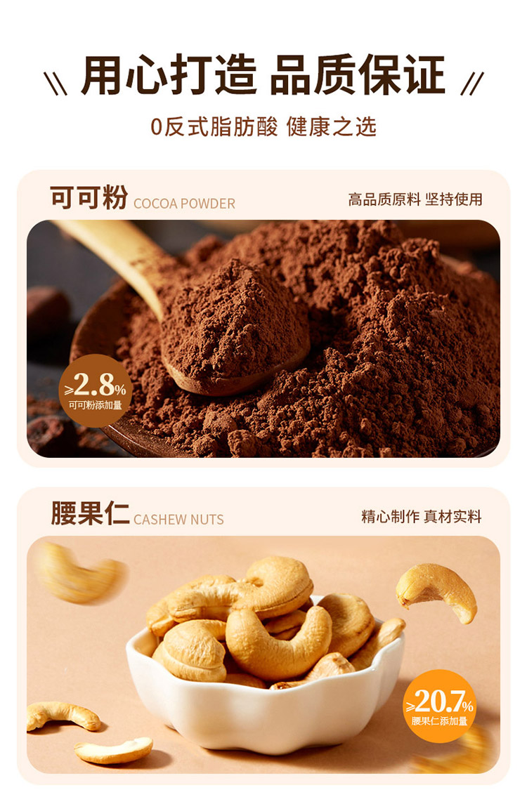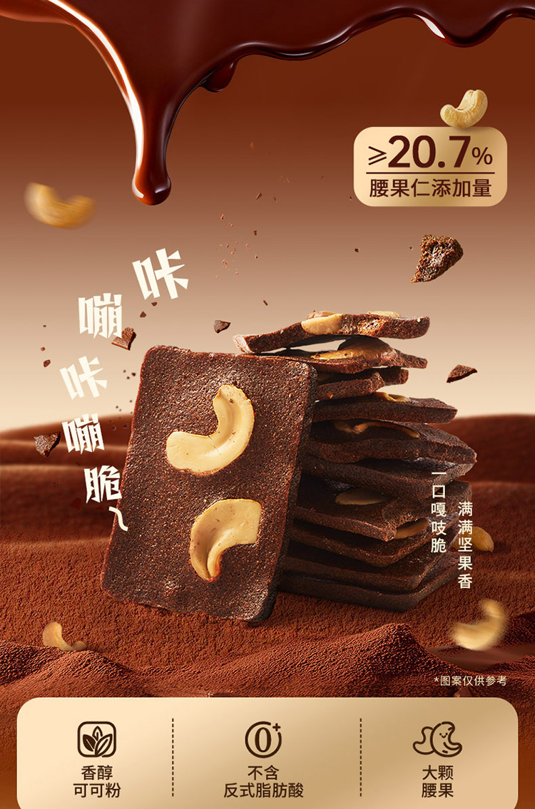 诺梵腰果布朗尼脆片坚果饼干休闲零食