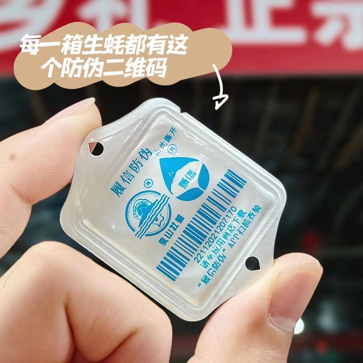 每箱带防伪码,我们还配了蚝刀和手套给大家,东西都给大家配齐了
