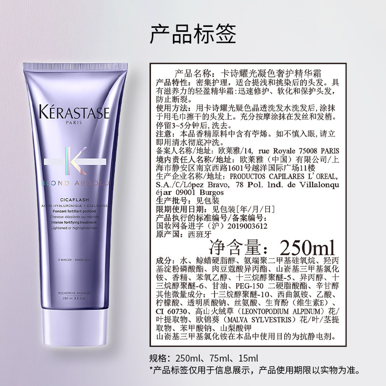 KERASTASE卡诗玻尿酸耀光凝色高能发膜护发素 精华霜留香柔顺护发柔顺顺滑水润