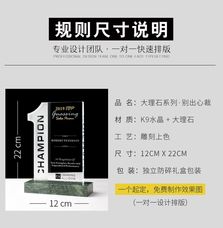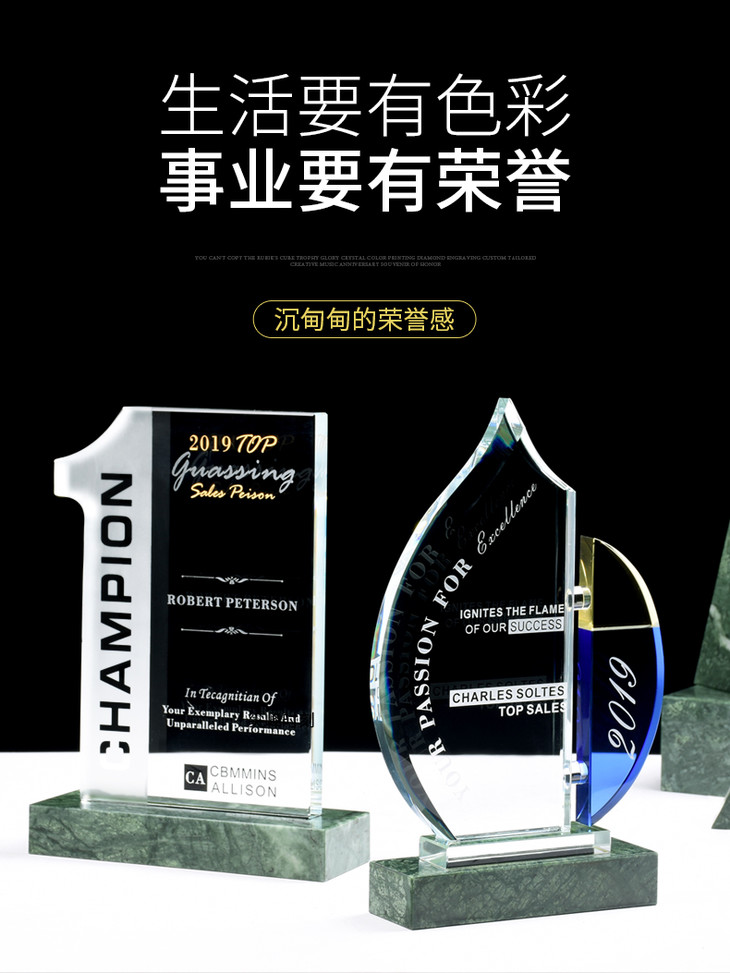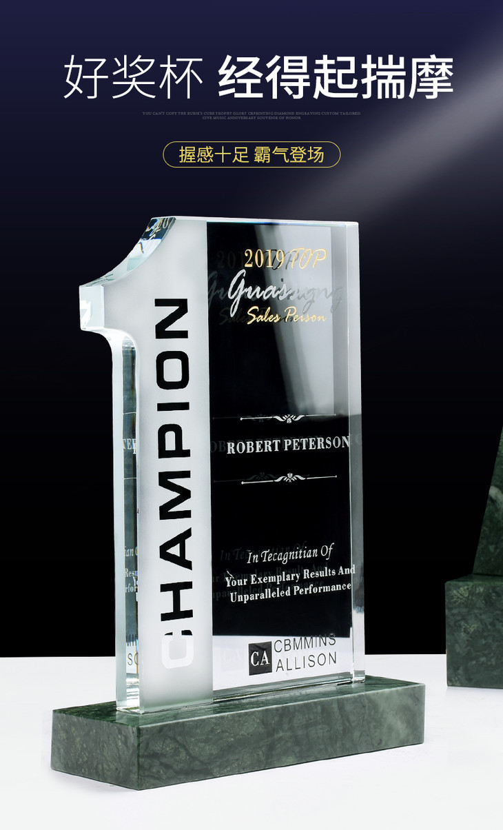 水晶奖杯定制定做大理石底座荣誉冠军授权代理颁奖奖牌刻字制作