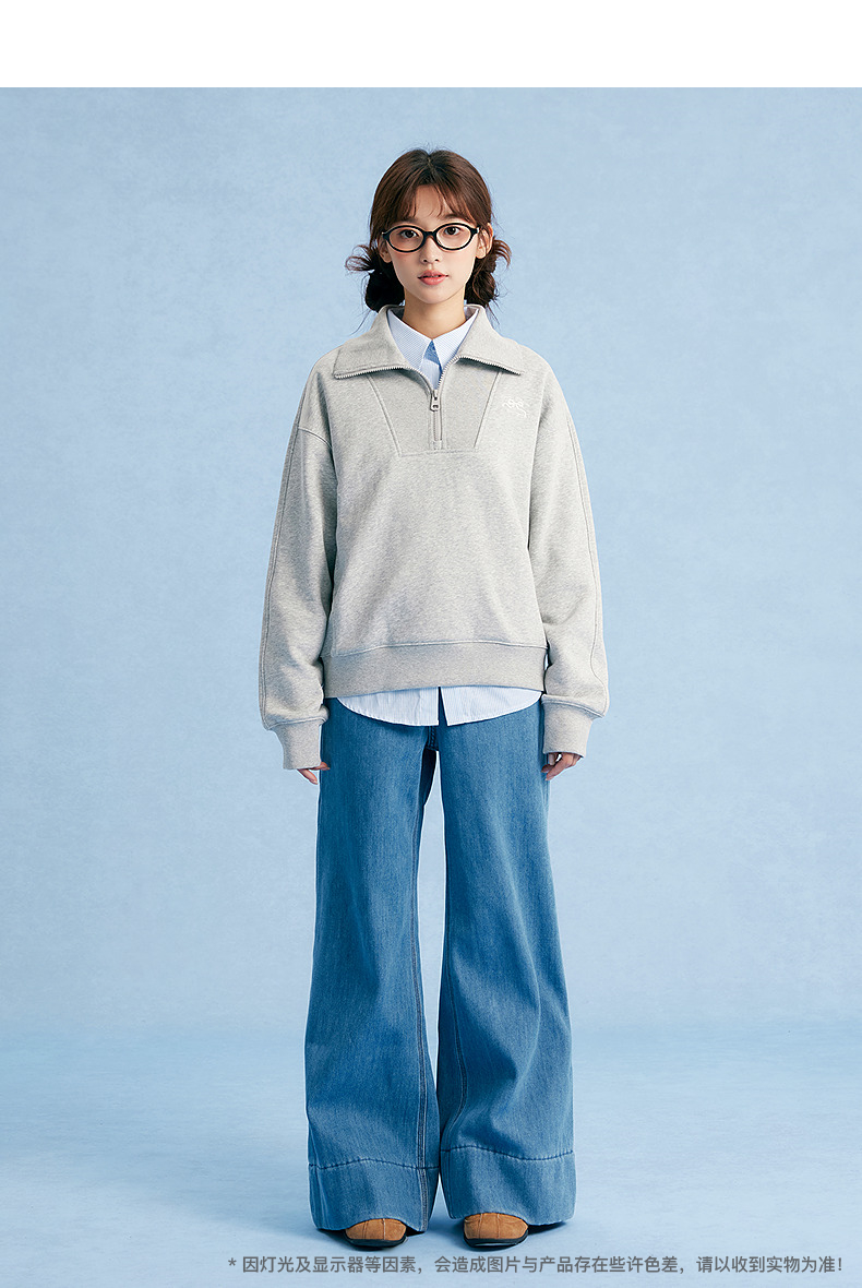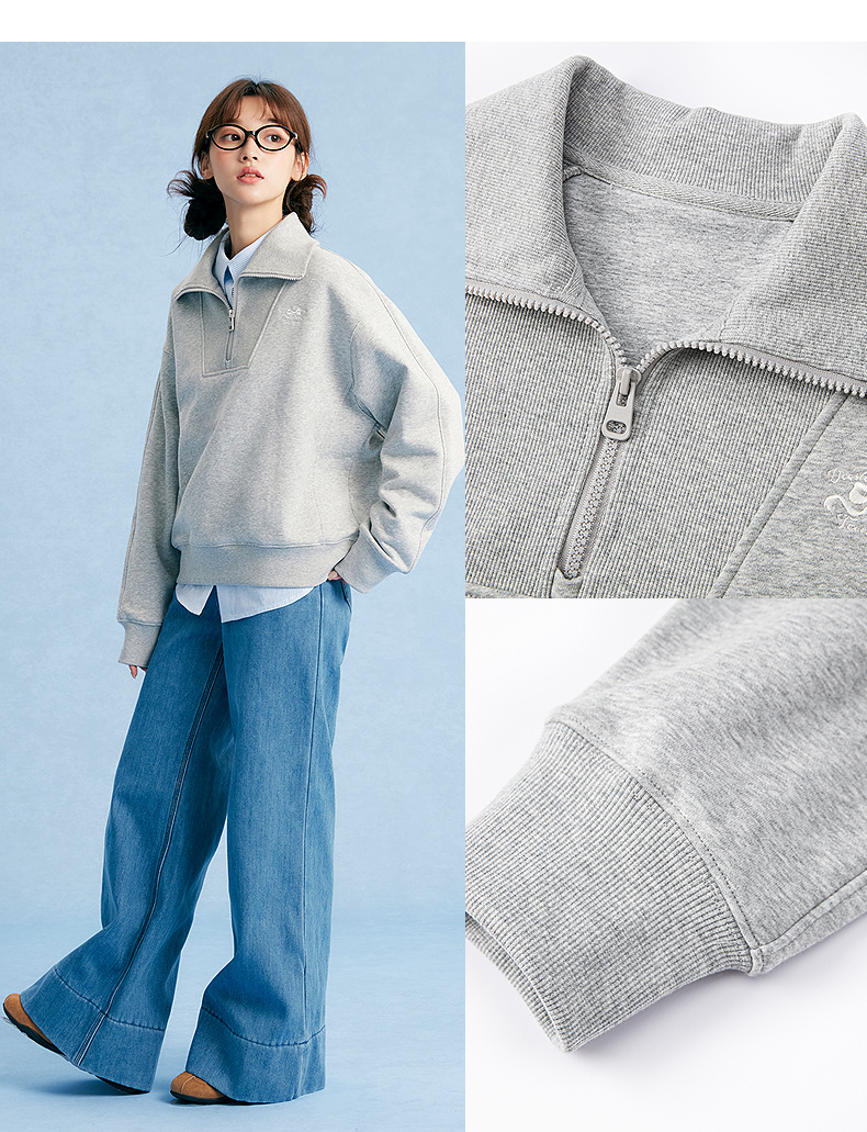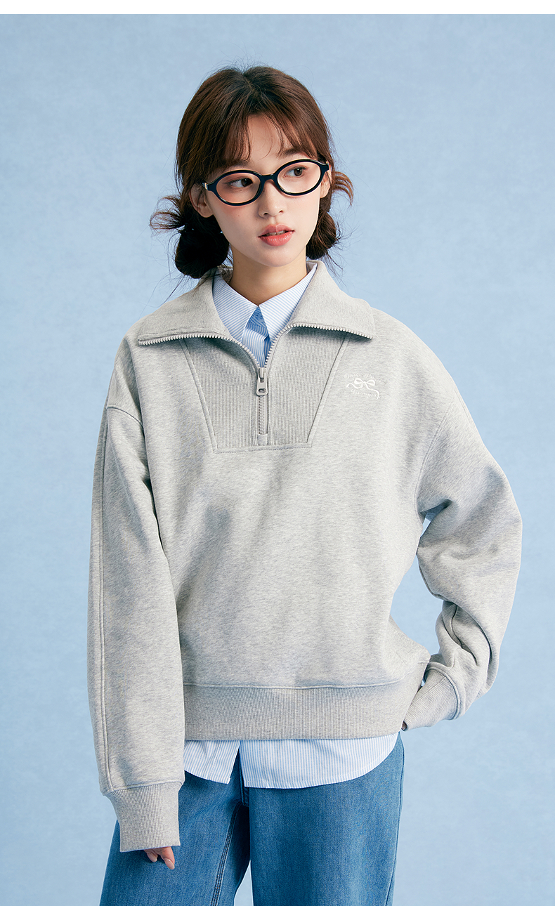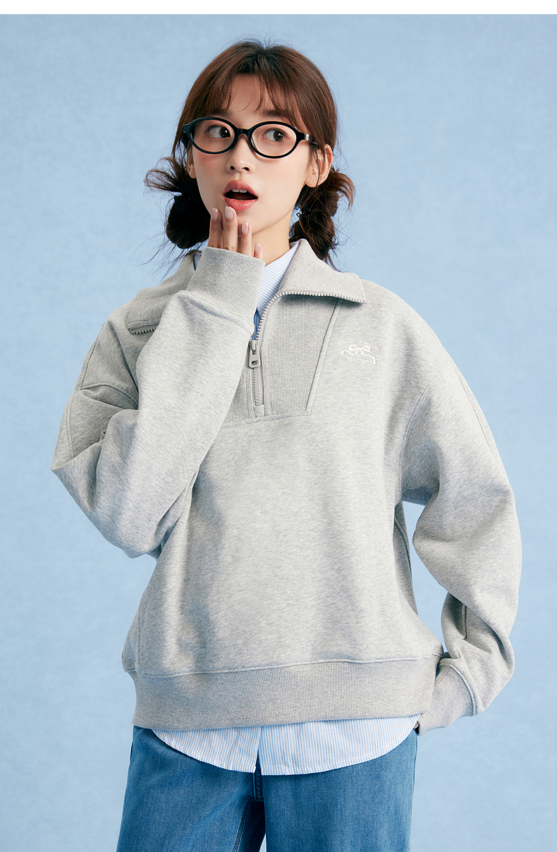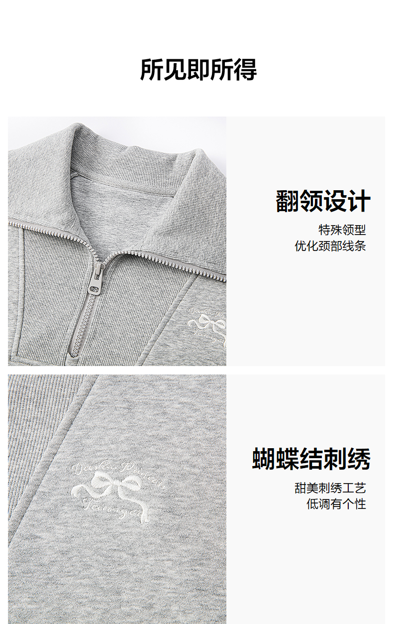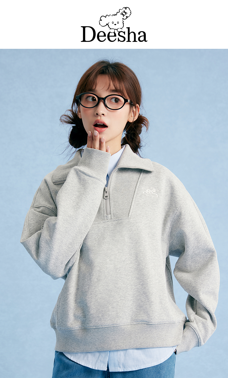 笛莎Deesha青少年女童卫衣2025秋季女童刺绣翻领拉链卫衣