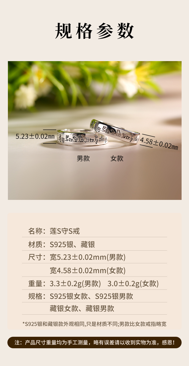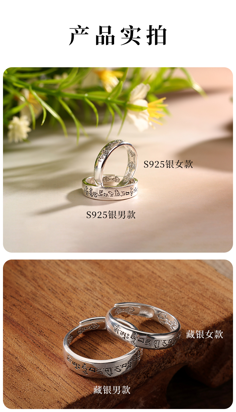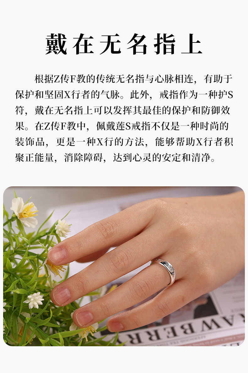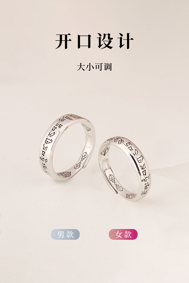 天语龙吟新品925纯银莲师守魂戒男女款银戒指开口可调节
