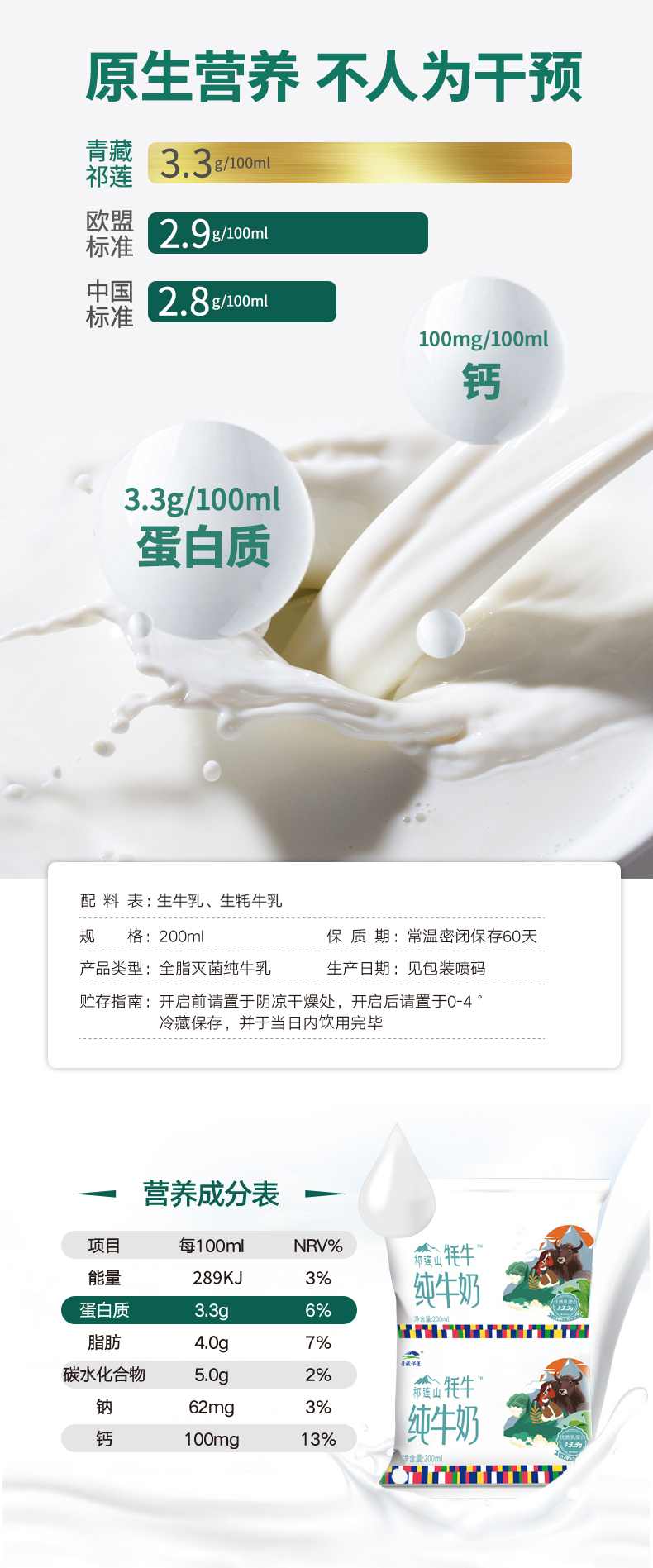 - 奶中极品一牦牛奶 零添加,零污染、高蛋白、高营养