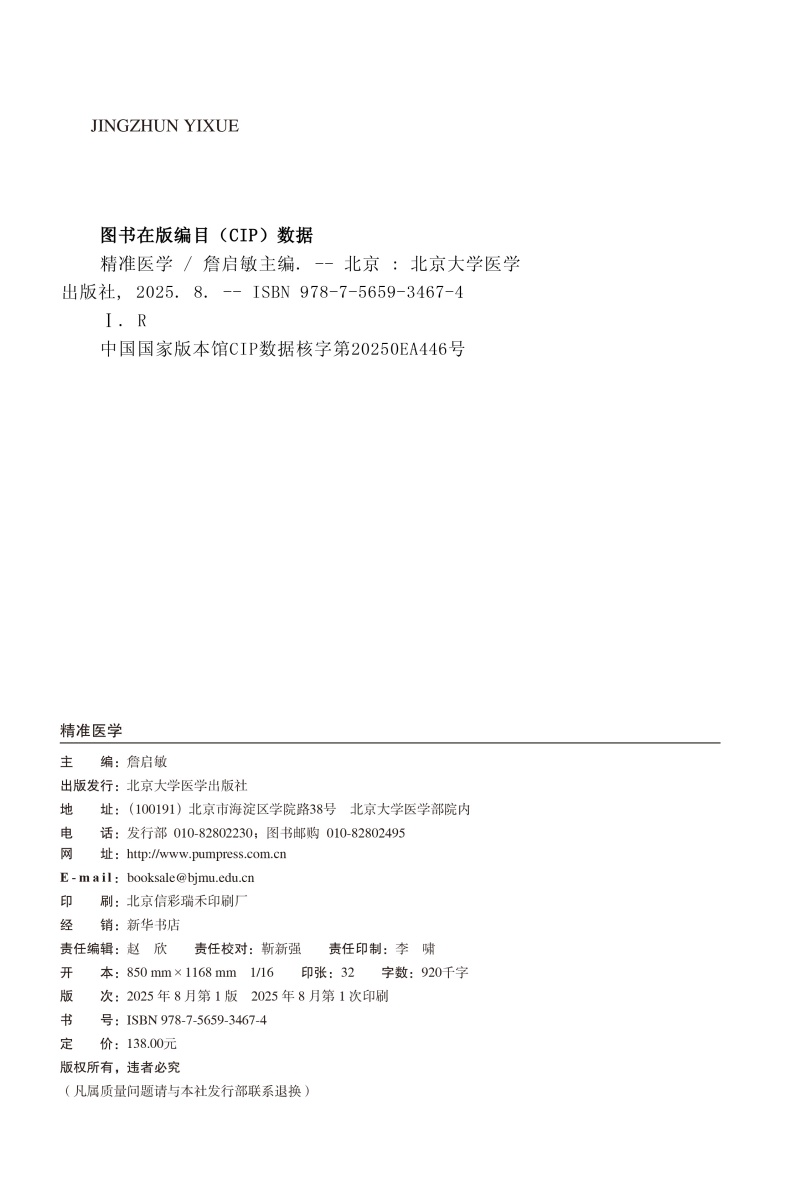 精准医学 北大医学研究生规划教材 詹启敏 主编 精准医学在疾病诊断治疗中的前沿进展 等 9787565934674 北京大学医学出版社