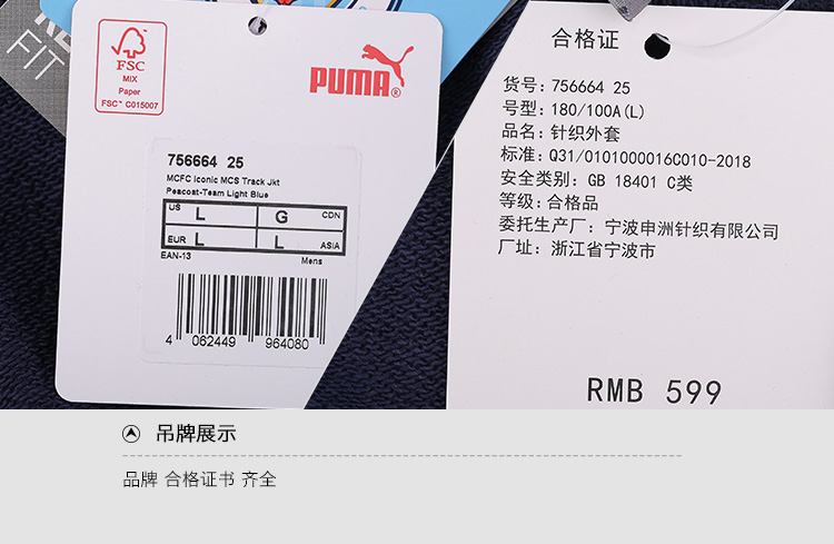 PUMA彪马19-20赛季曼城场下夹克外套男756664-25