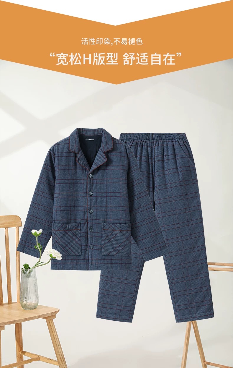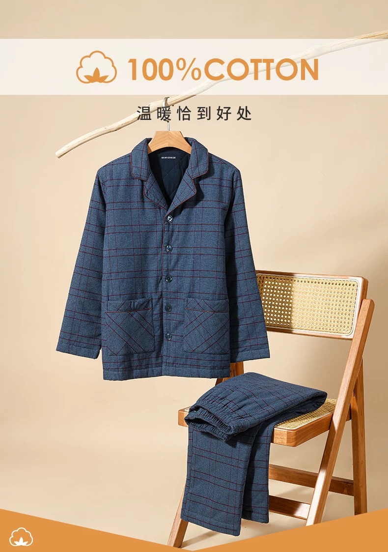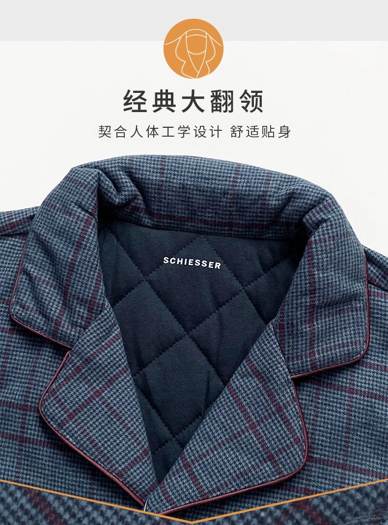 [男士夹棉加厚家居]SCHIESSER德国舒雅男士夹层内珩棉套装355g 39/25513H