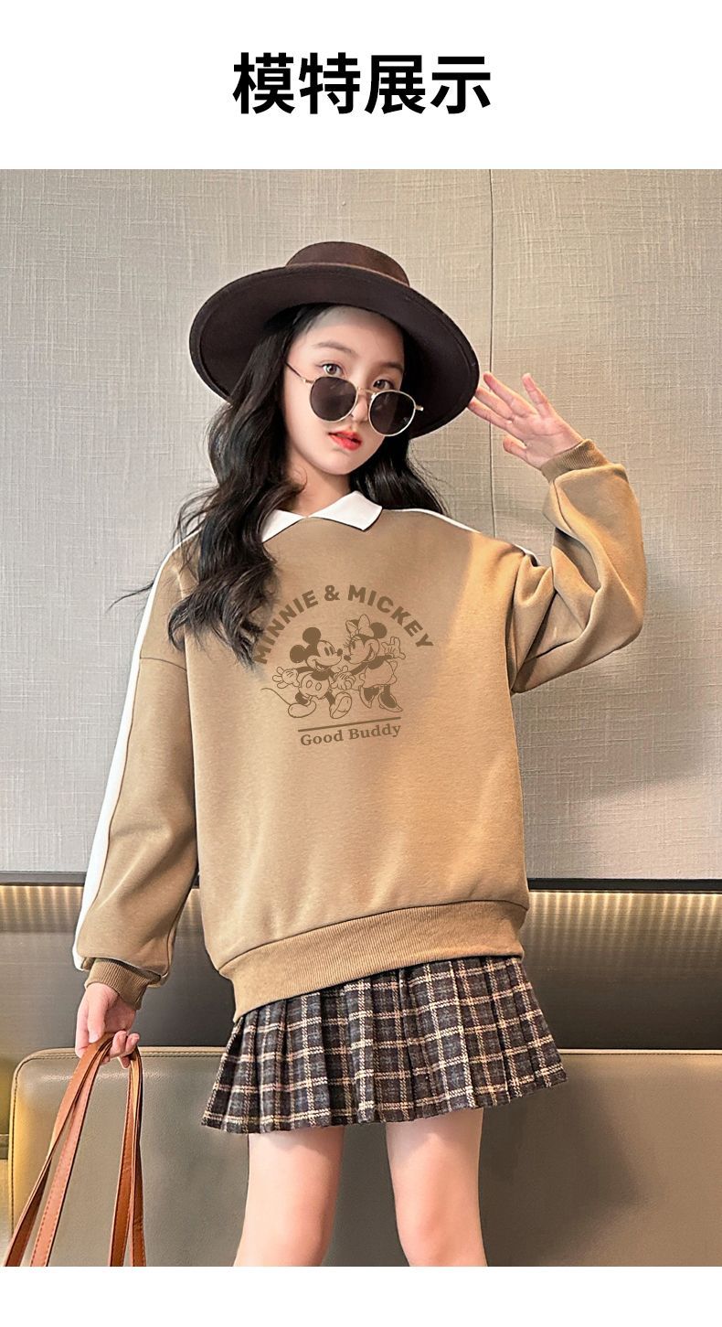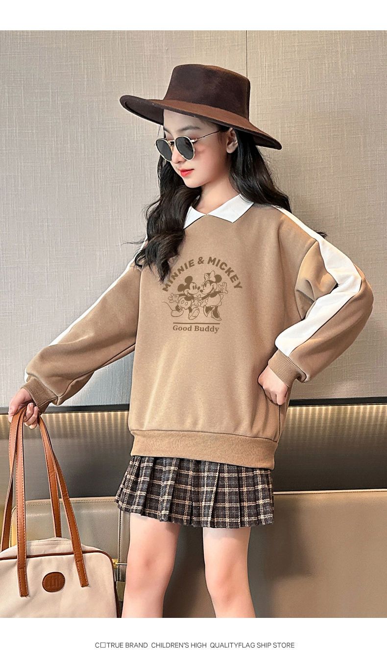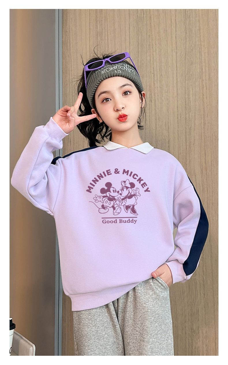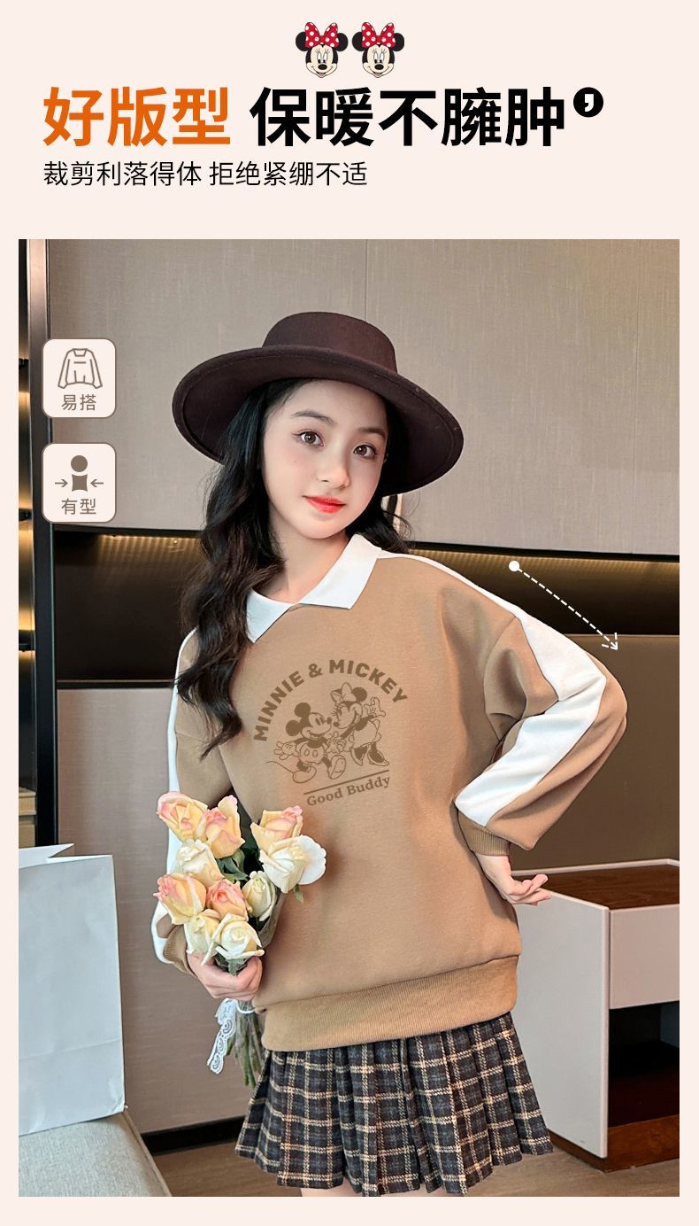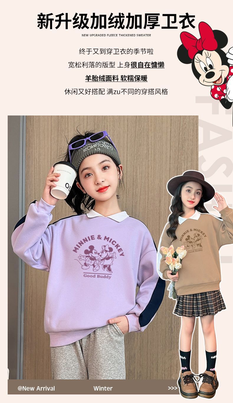 迪士尼女童加绒卫衣秋冬新款女大童上衣冬季加厚保暖衣打底衫洋气