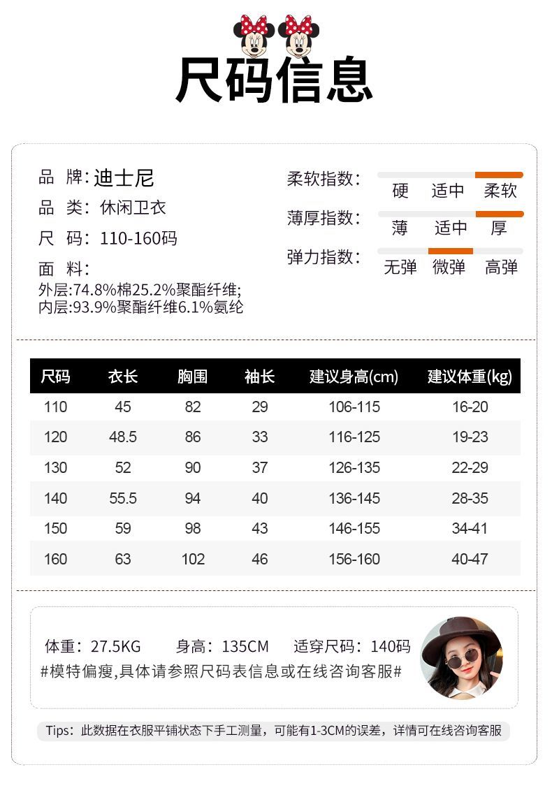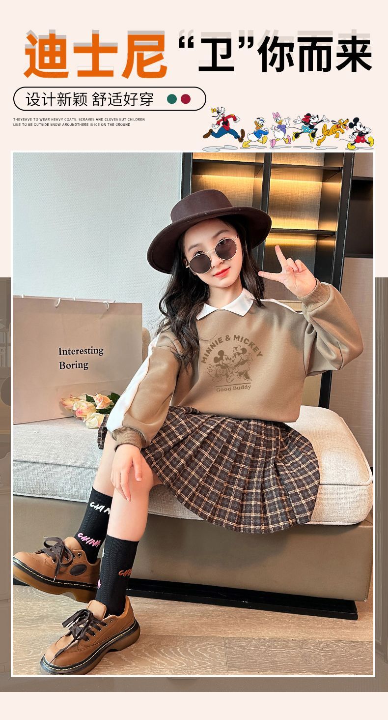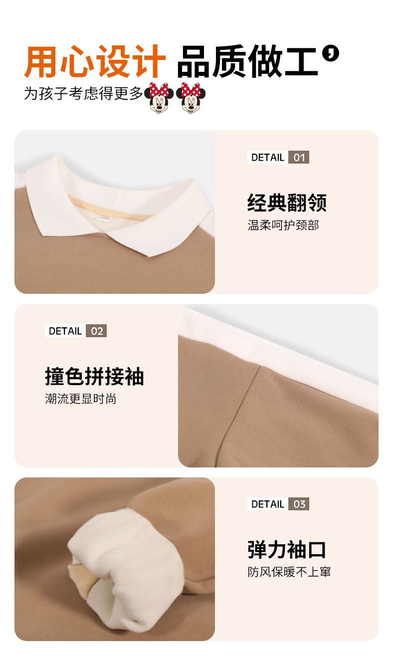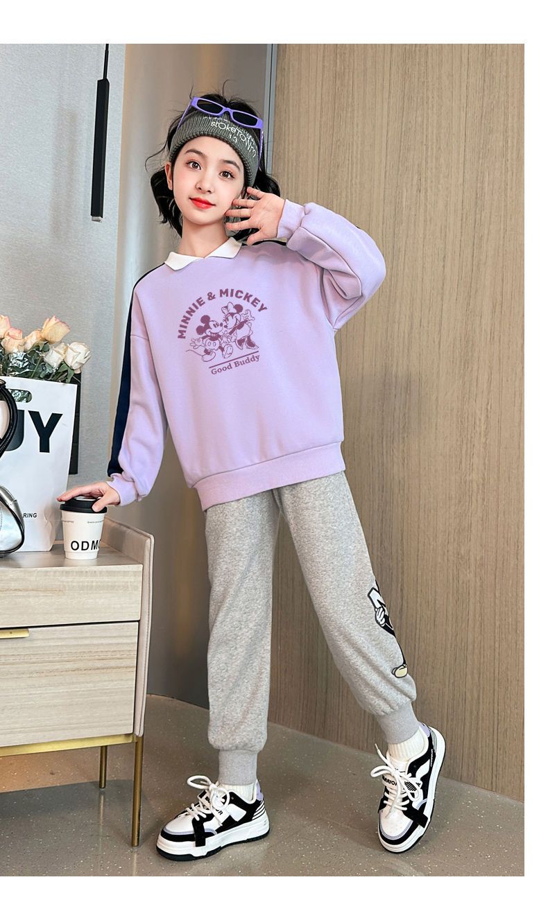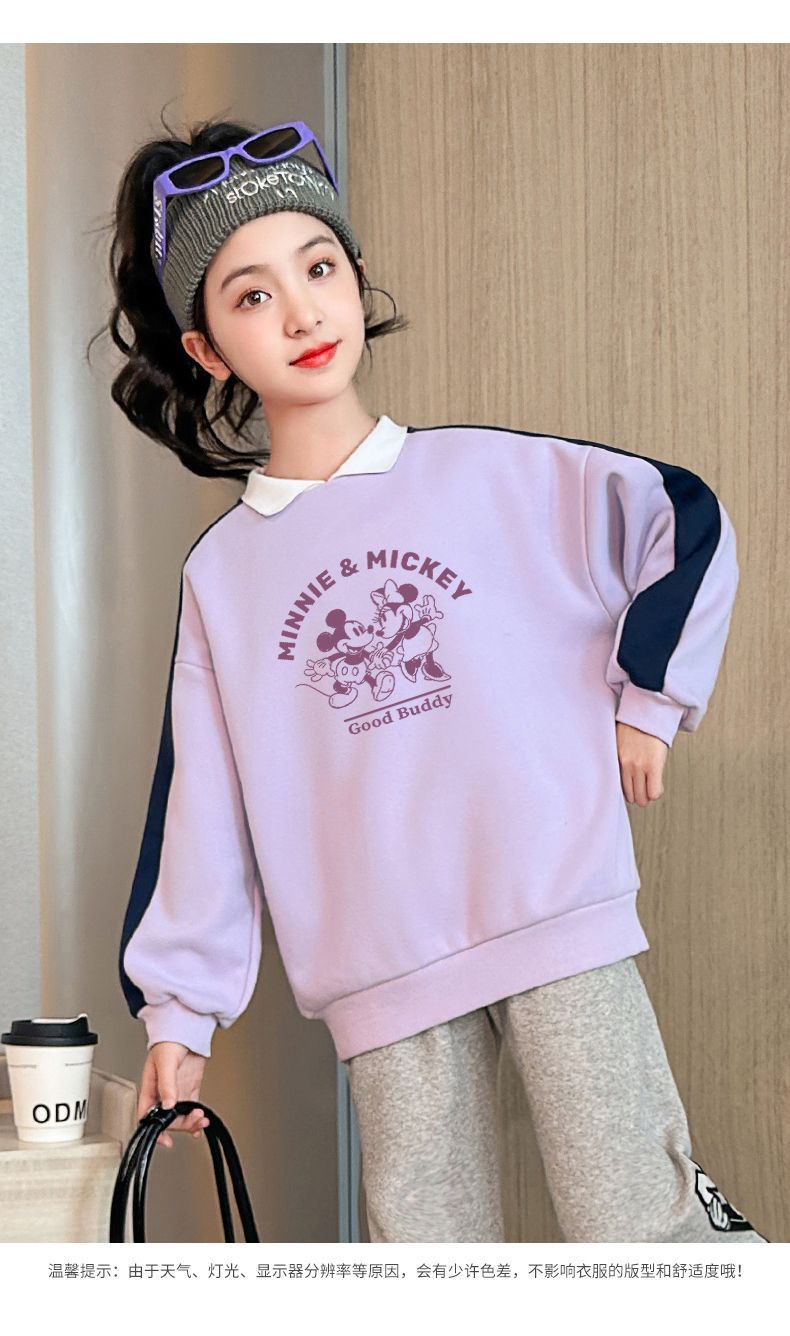 迪士尼女童加绒卫衣秋冬新款女大童上衣冬季加厚保暖衣打底衫洋气