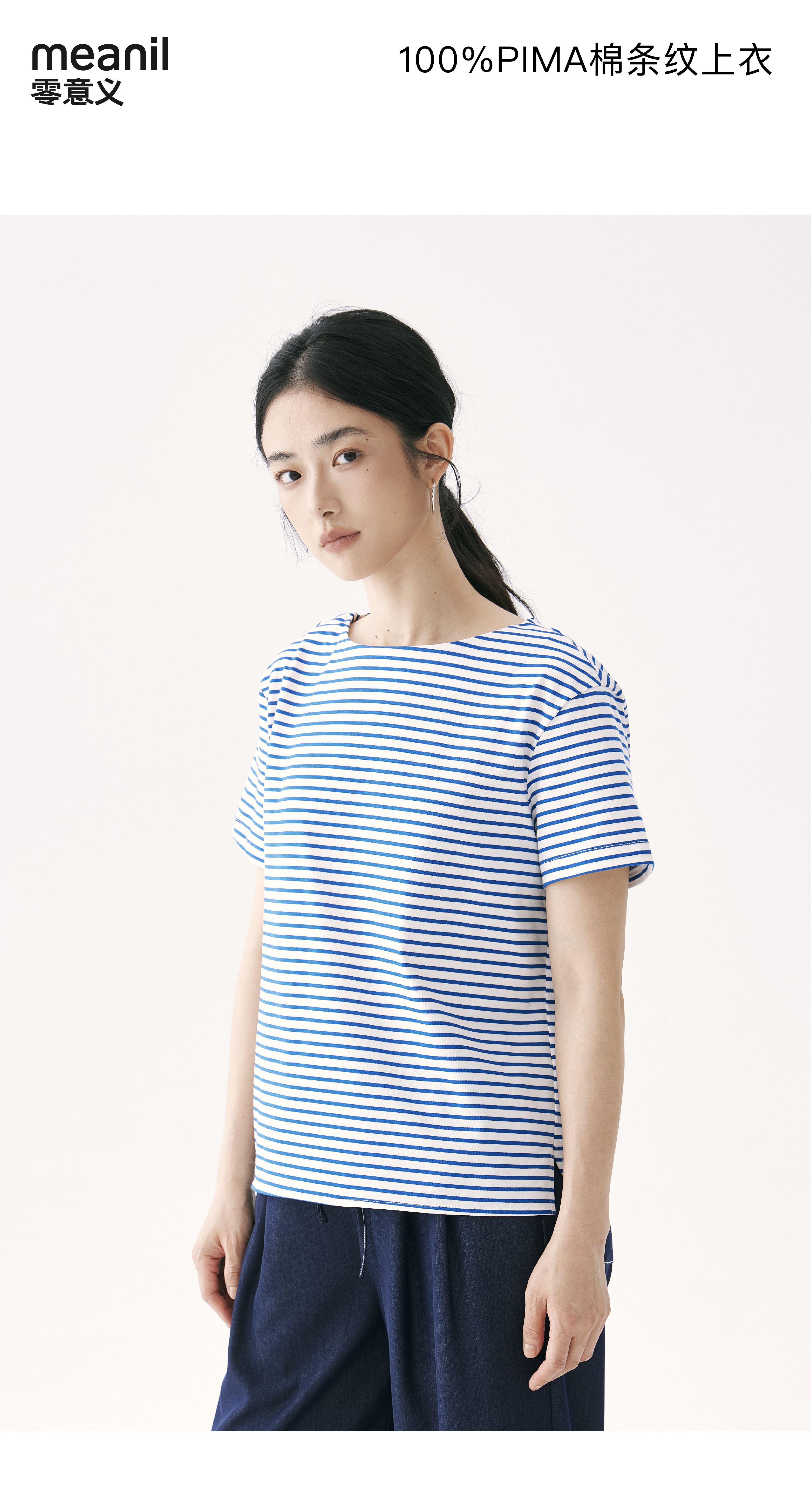 零意义 meanil 100%PIMA棉条纹拉链上衣
