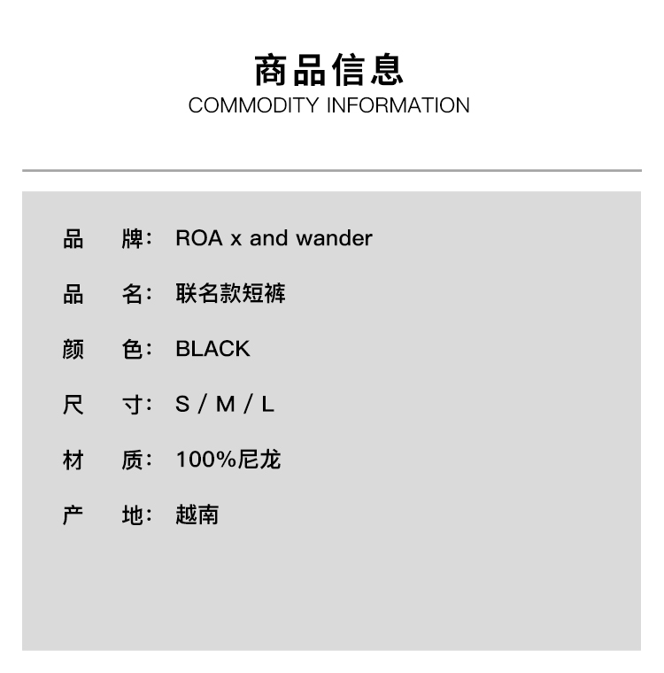 ROA x and wander ripstop wind short 联名款防泼水户外短裤