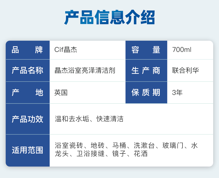 Cif晶杰浴室亮泽清洁剂 700ml*2瓶装 水垢卫生间玻璃水龙头瓷砖强力去污 除菌率99% 气味清新 生物降解香精