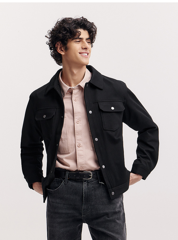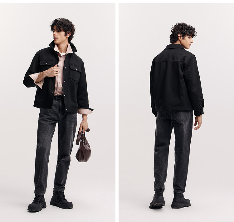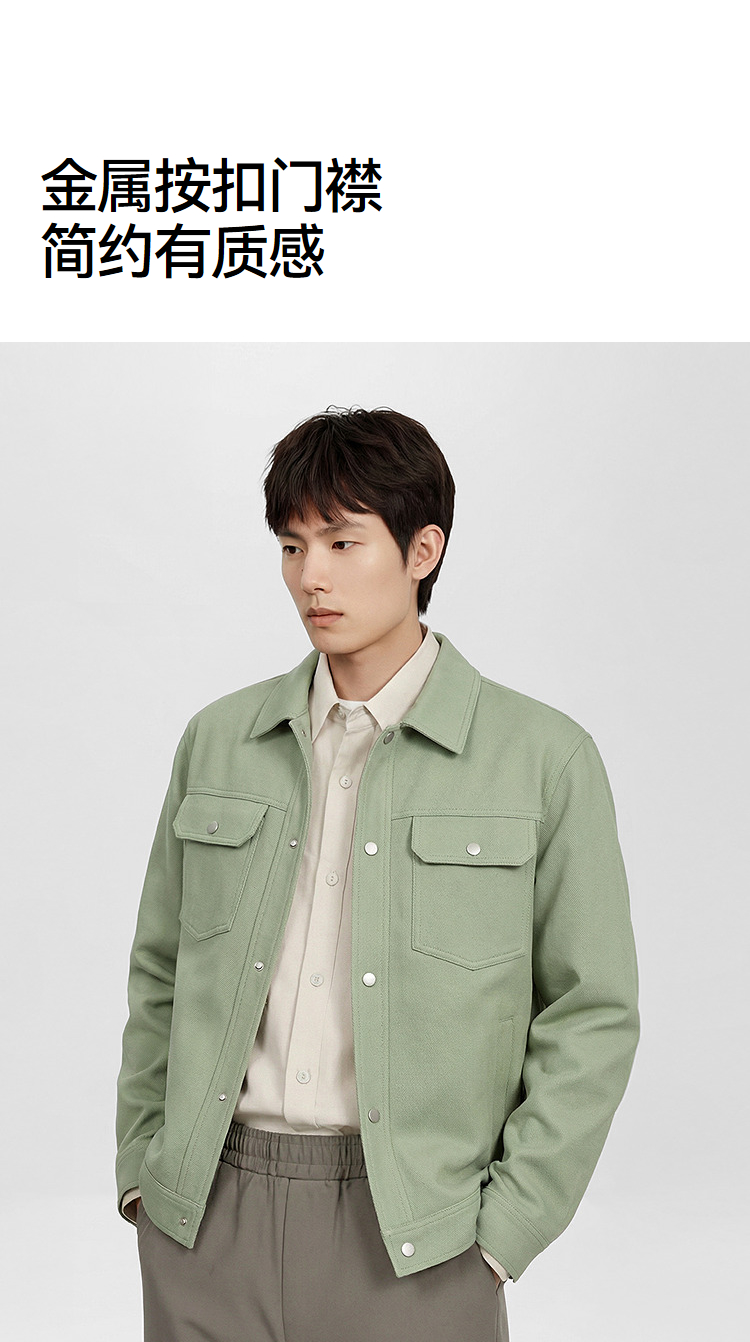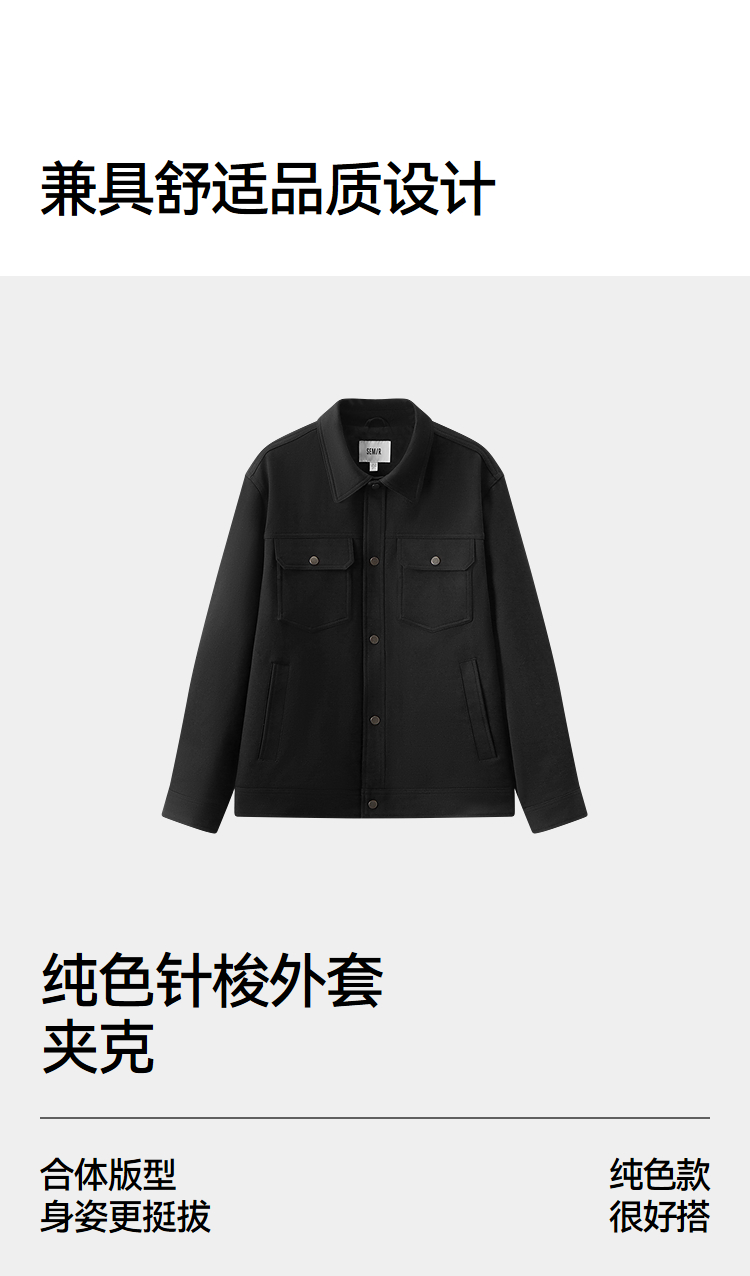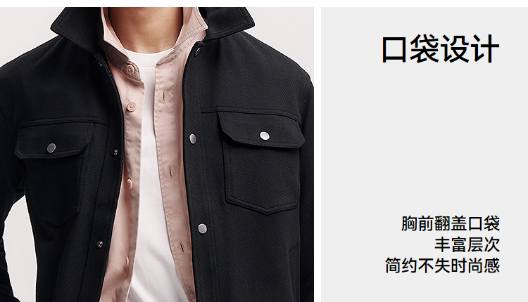 森马夹克男春季经典纯色翻领针织外套简约百搭前胸翻盖口袋上衣潮
