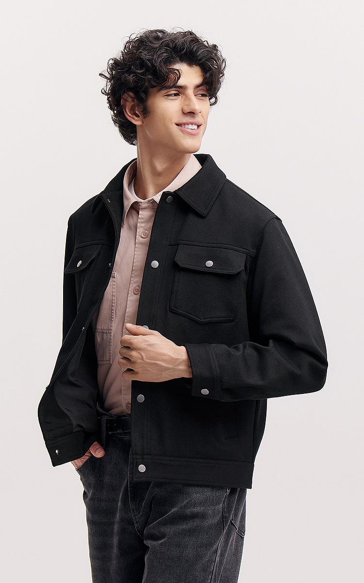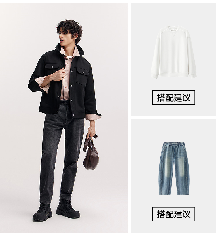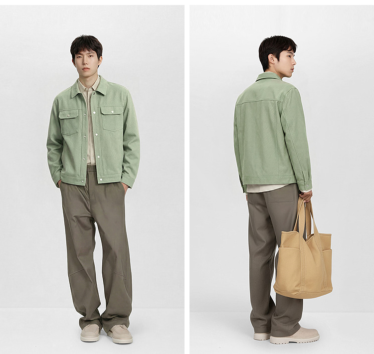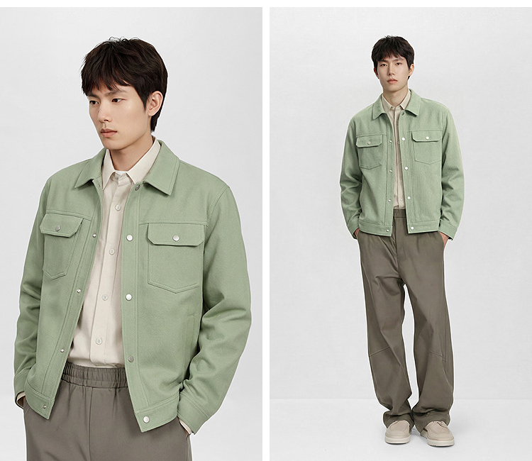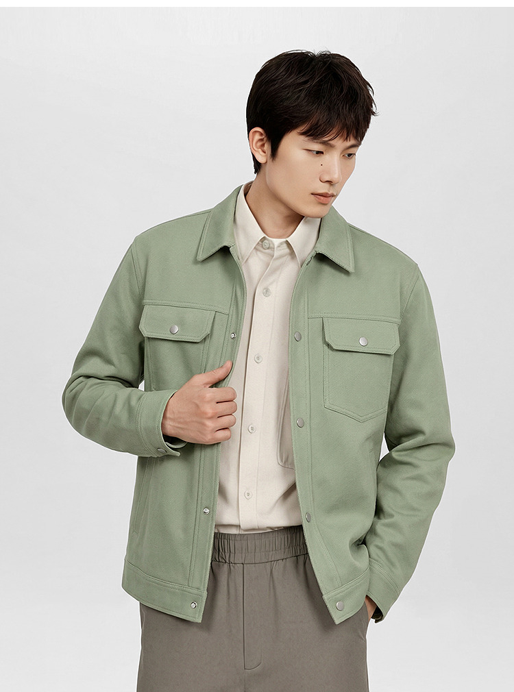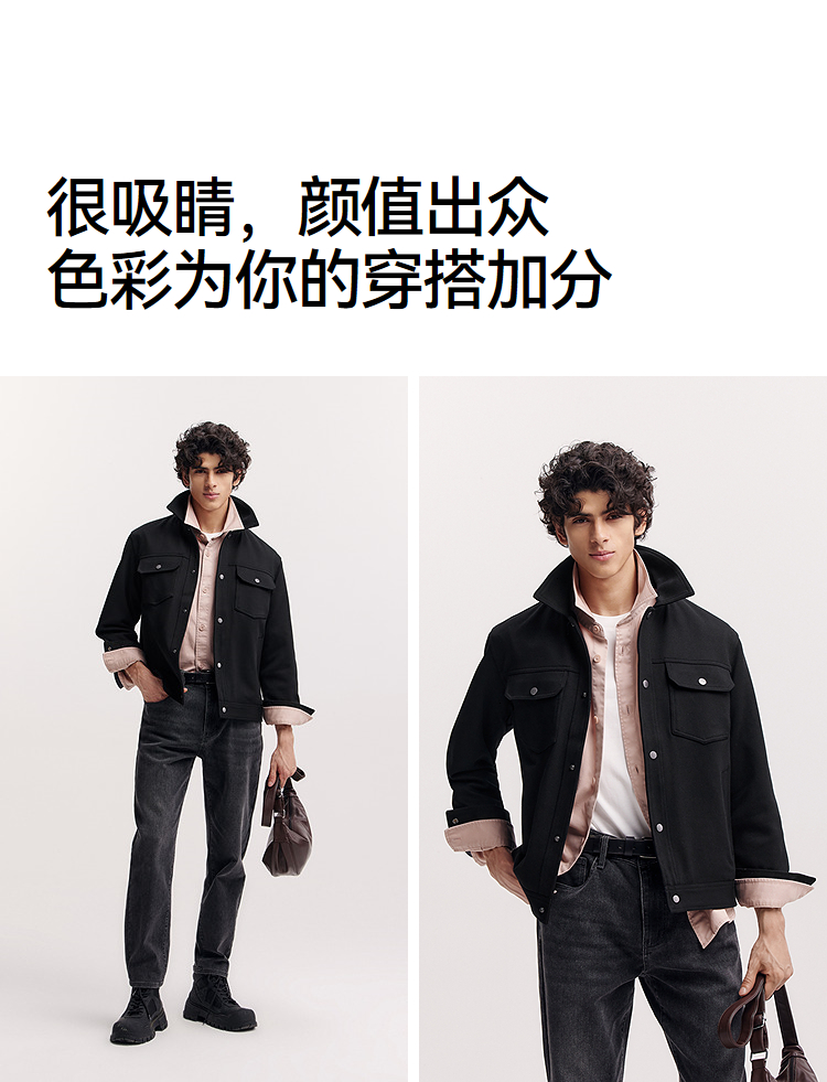 森马夹克男春季经典纯色翻领针织外套简约百搭前胸翻盖口袋上衣潮