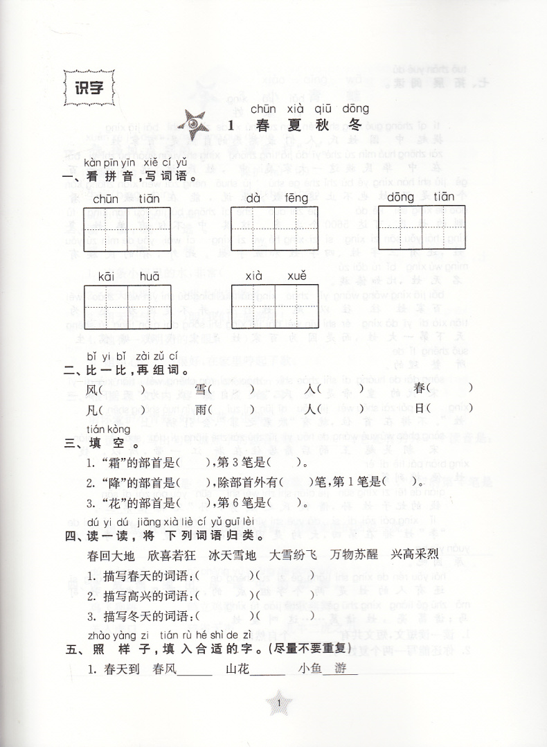 全新版 交大之星 课后精练卷 部编版语文 1年级下册/一年级第二学期 配新人教版统编教材 与人教版统编教材配套使用