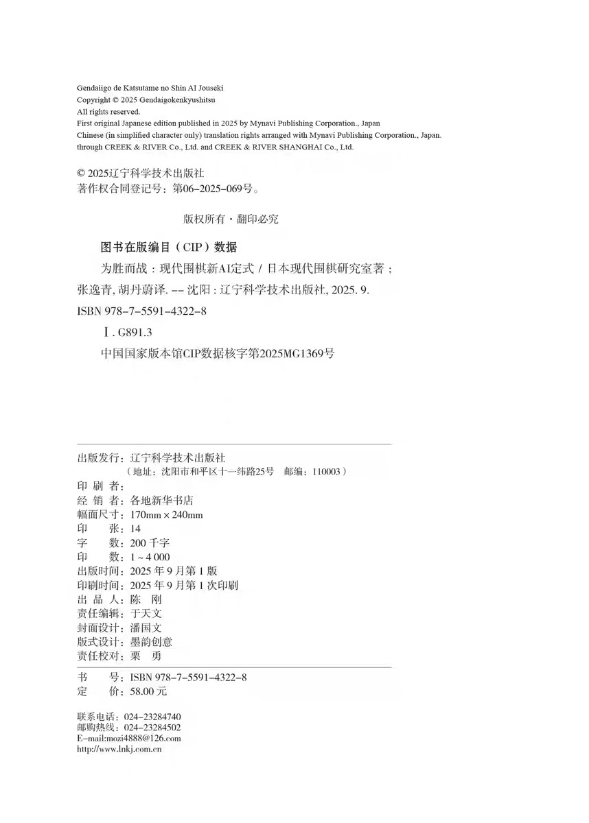 新书上市 为胜而战 : 现代围棋新AI定式 日本现代围棋研究室著 (日)一力辽 监修 张逸青 胡丹蔚 译 定价58元