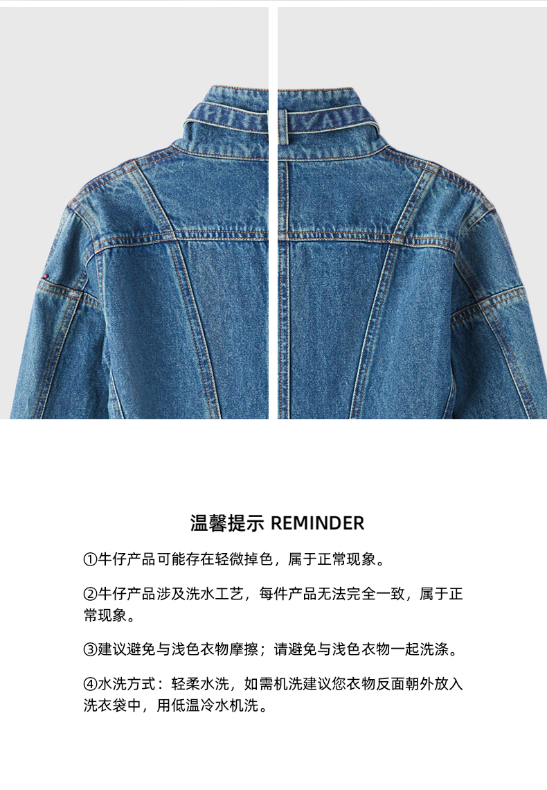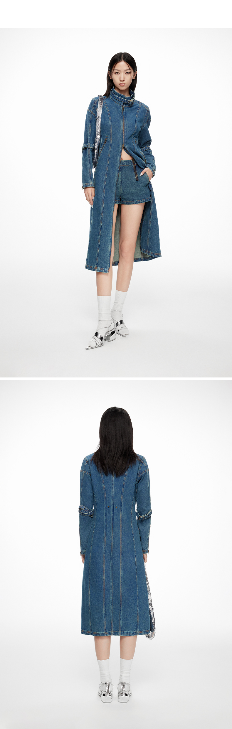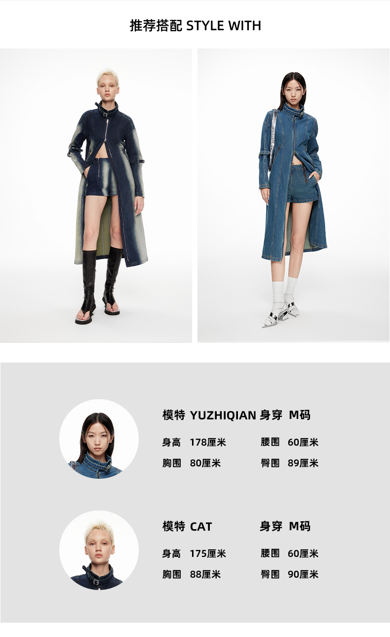 lost in echo2024春季新品设计师品牌分割线扣带酸洗牛仔长外套
