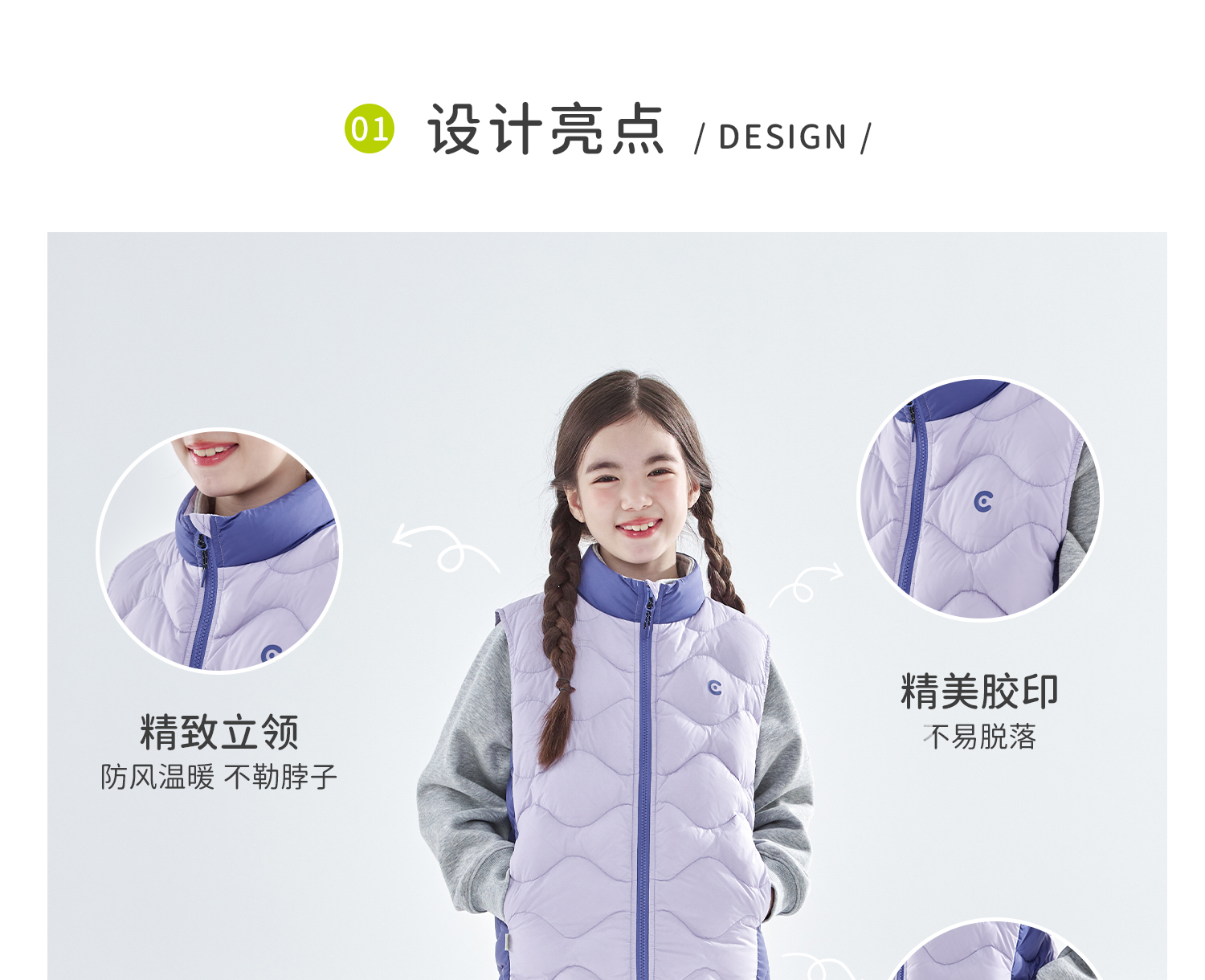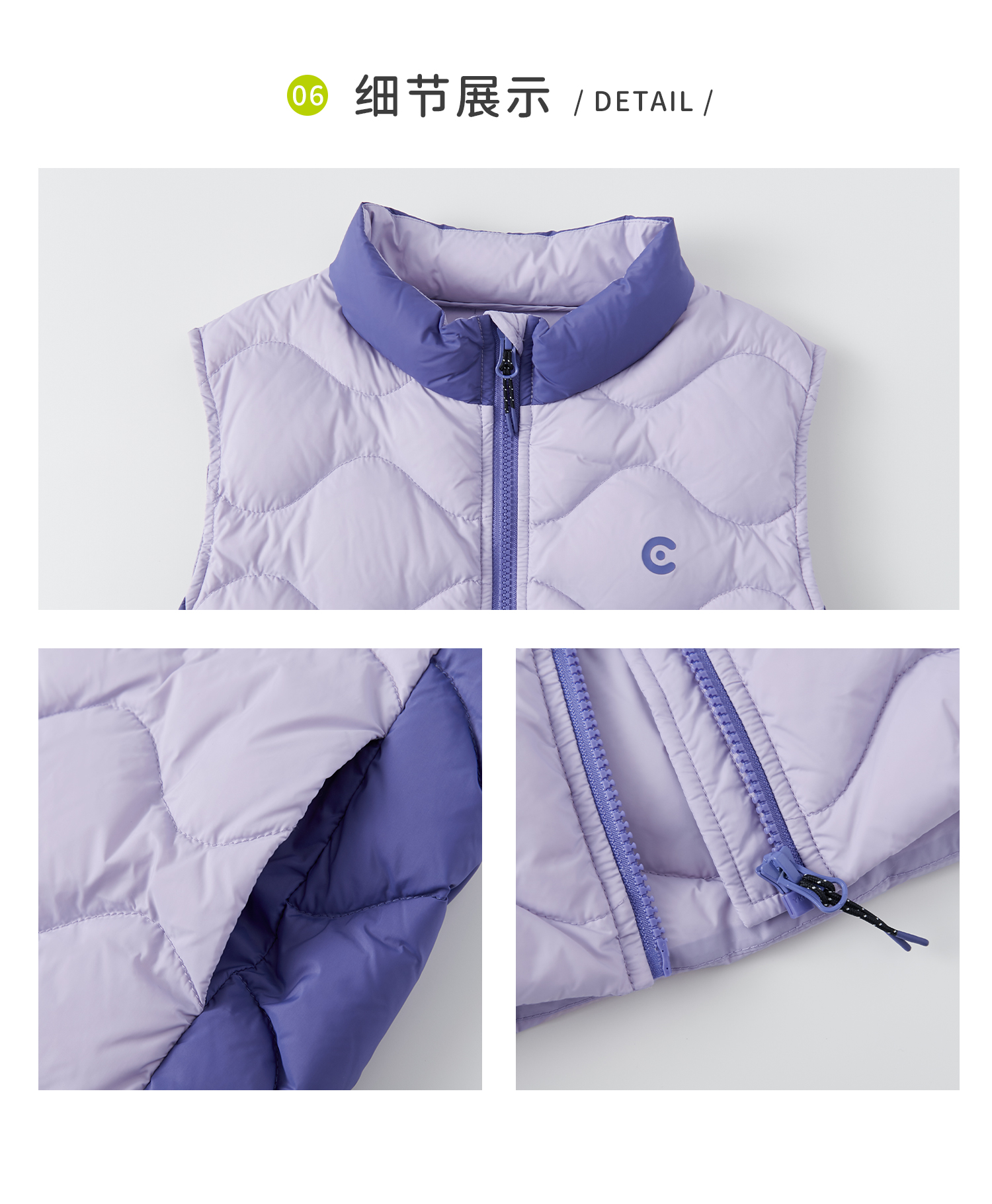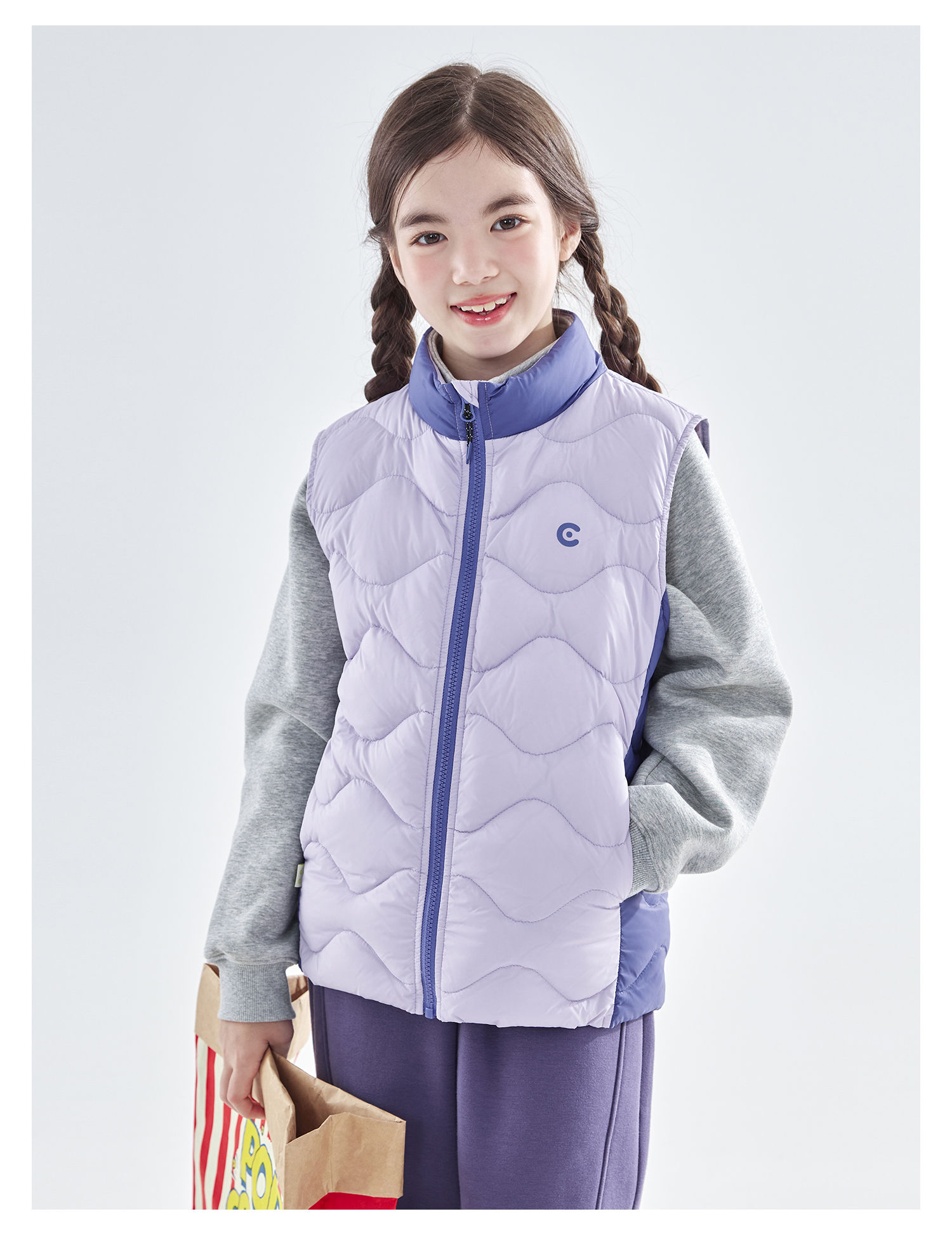 cicochild25年冬季新款亲子中大女童拼色羽绒马甲叠穿防钻绒上衣