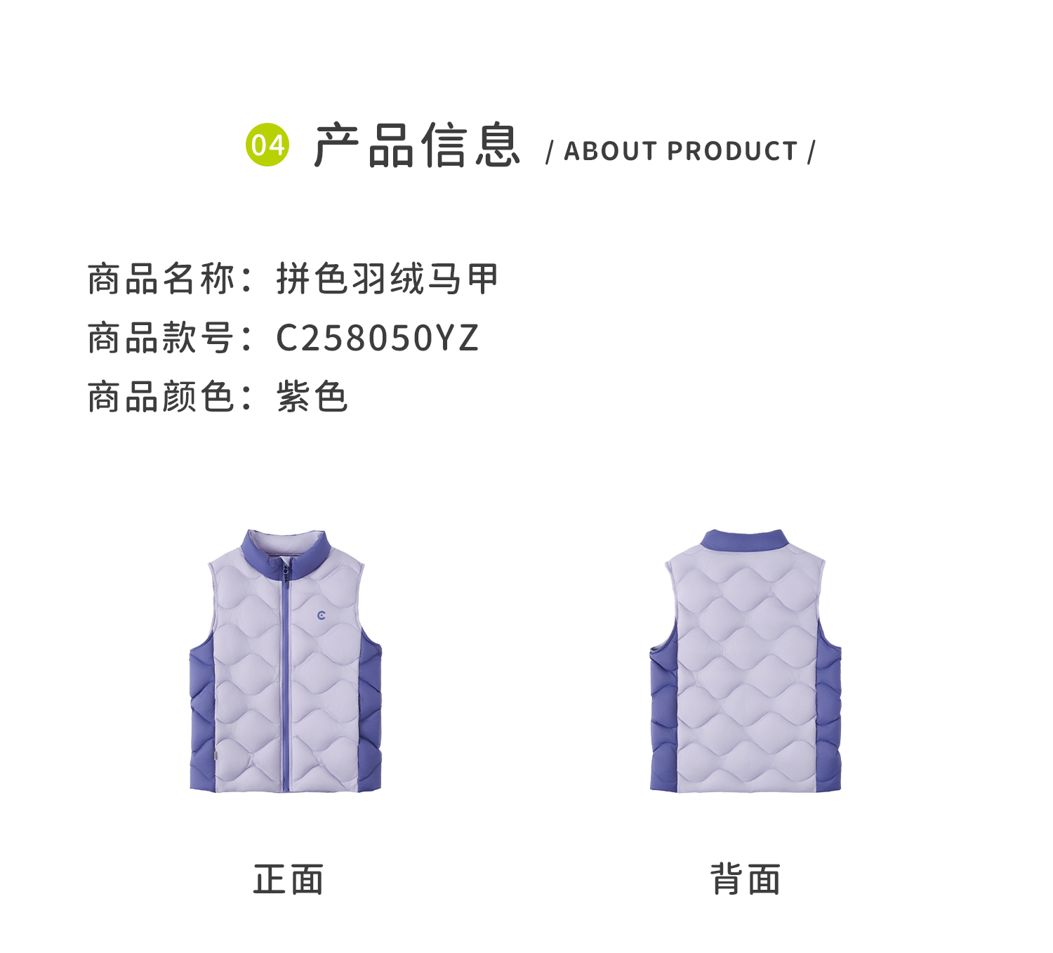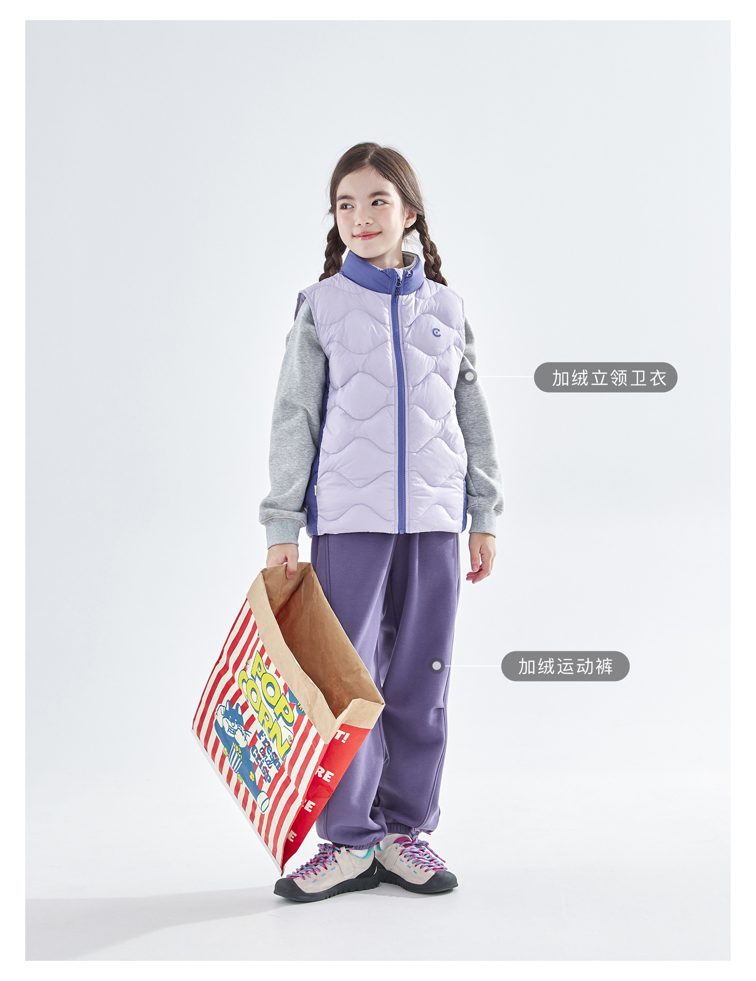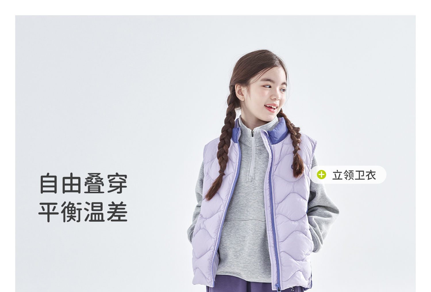 cicochild25年冬季新款亲子中大女童拼色羽绒马甲叠穿防钻绒上衣