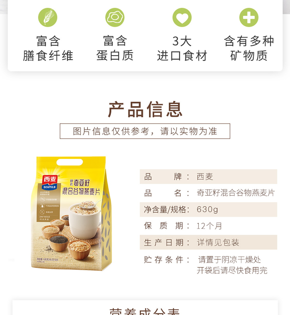 奇亚籽混合谷物燕麦片630g内含45g*14包独立小包装懒人早餐免煮冲饮健身控糖高蛋白全家共享