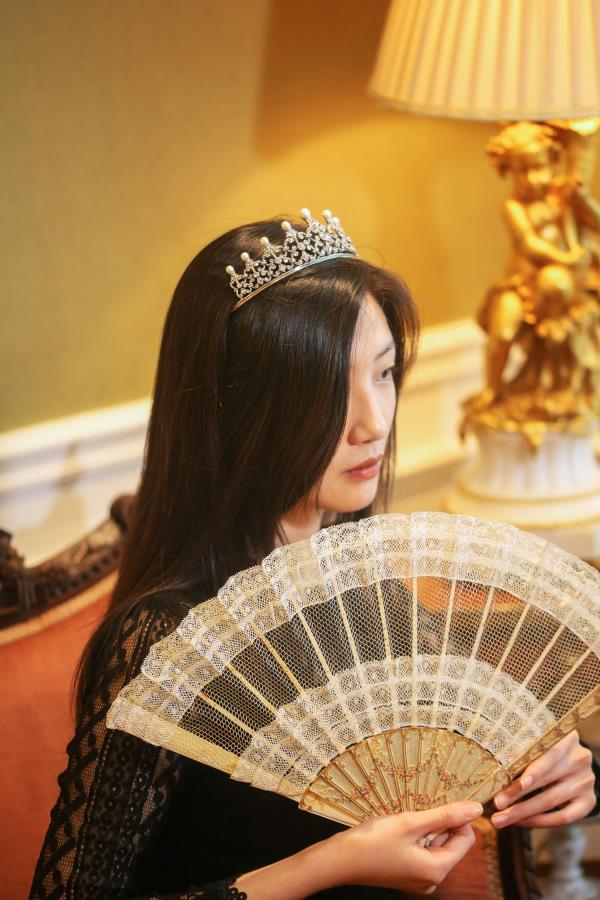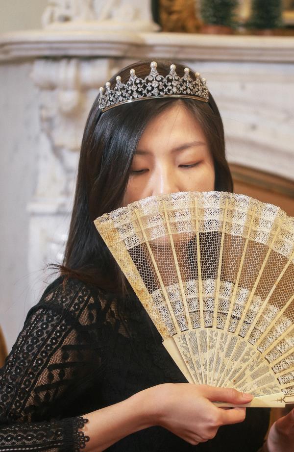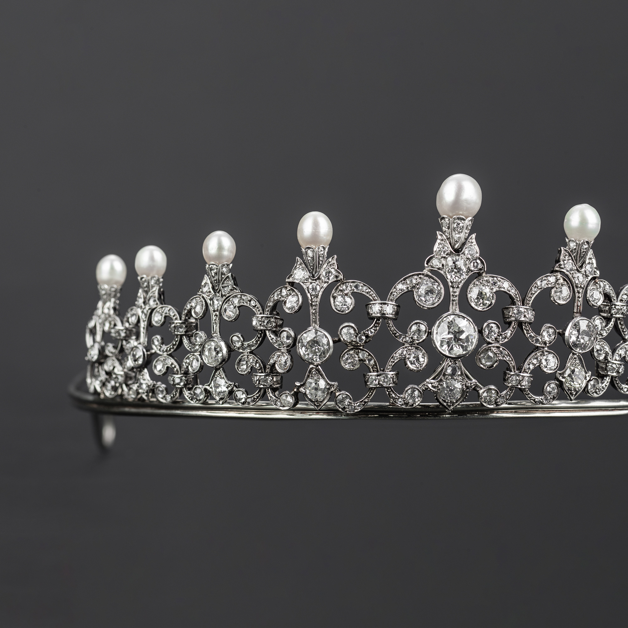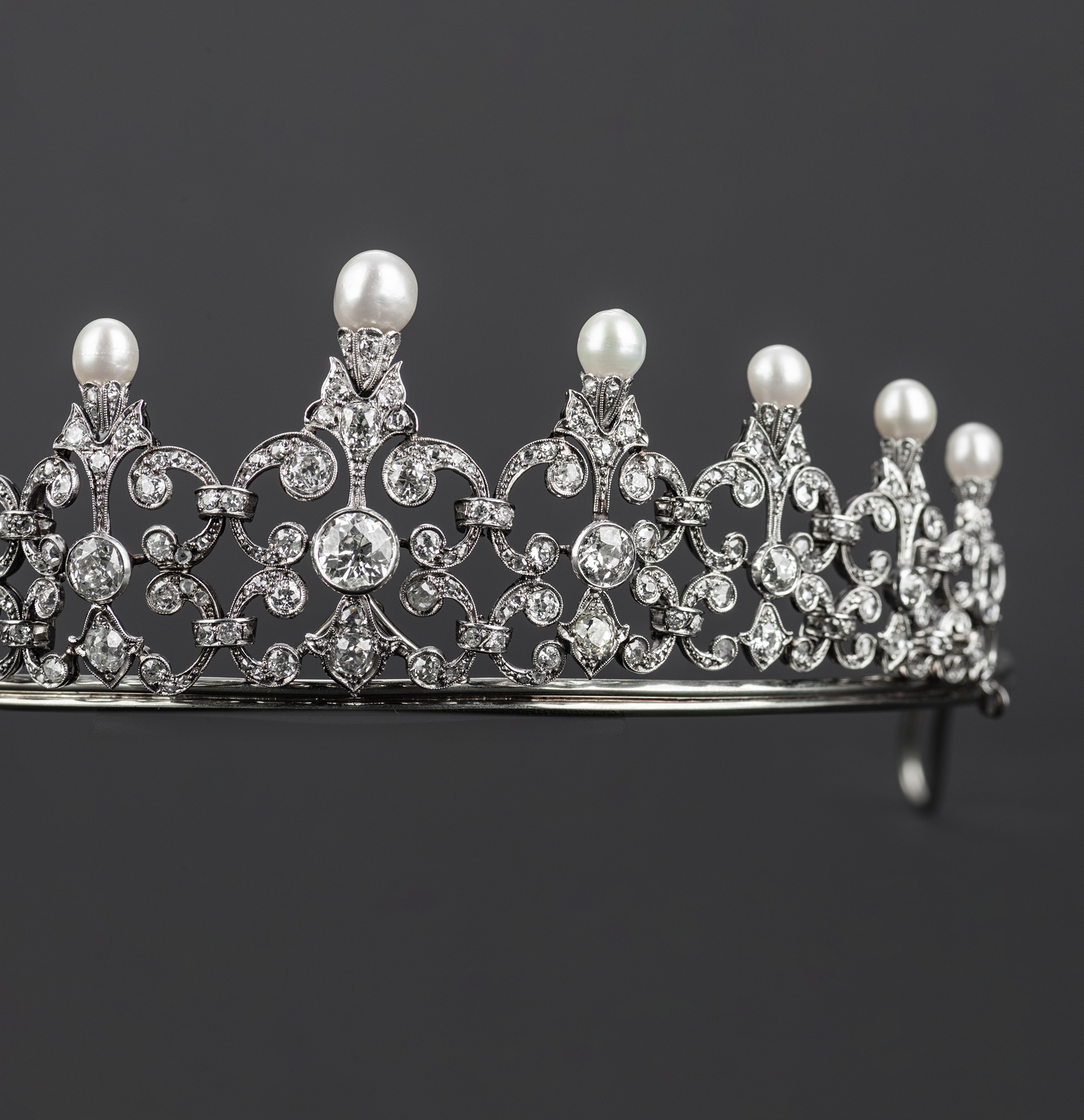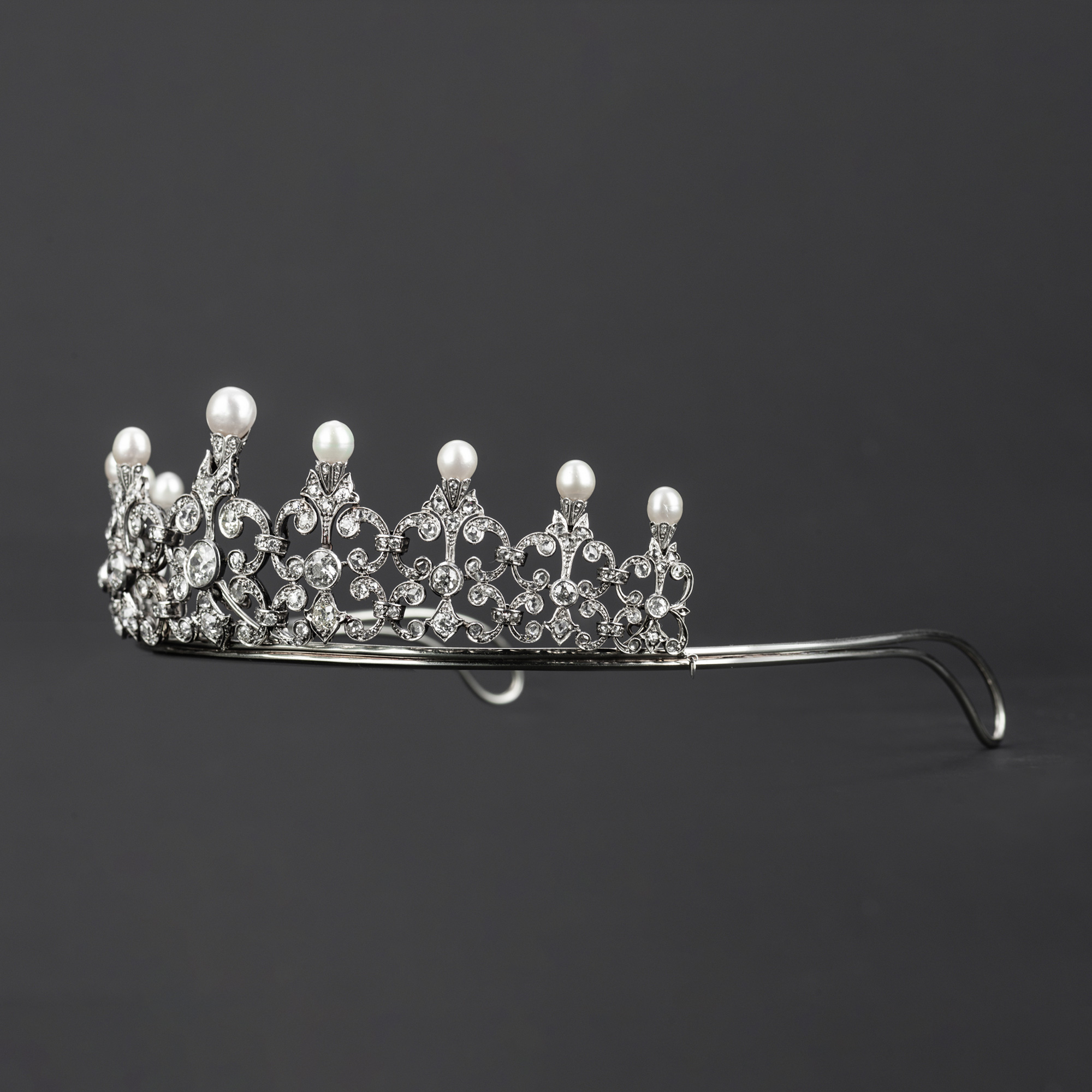 独角鹿西洋古董珠宝首饰1890年代欧洲金银叠打镶嵌钻石珍珠冠冕