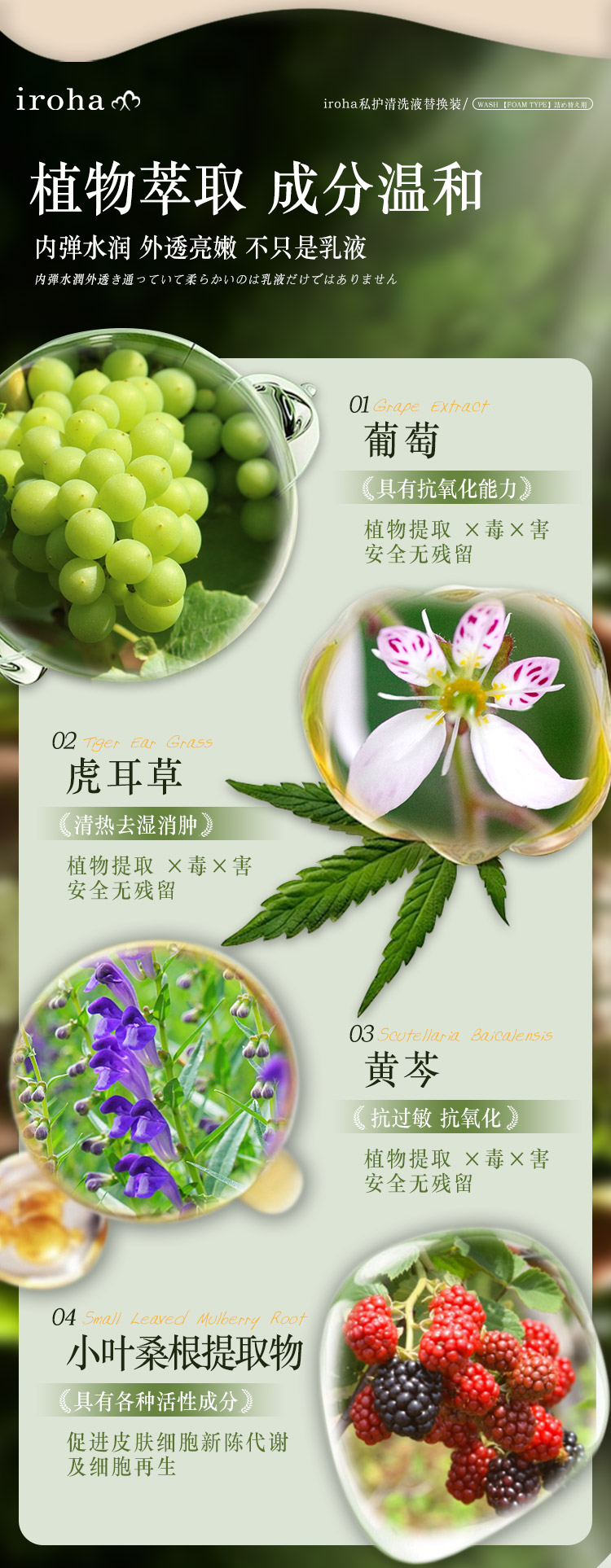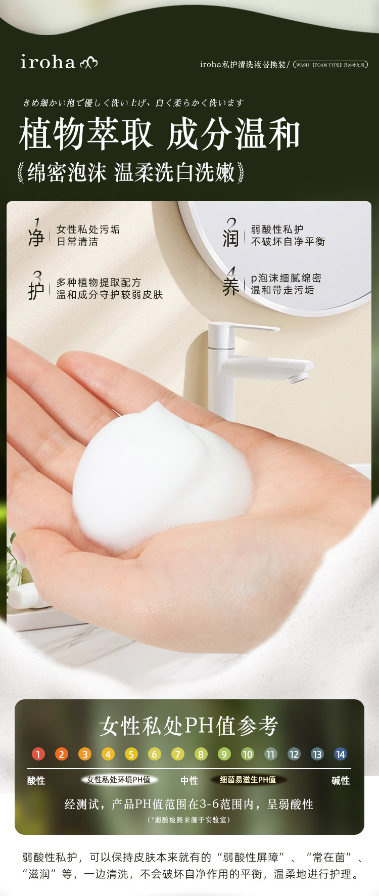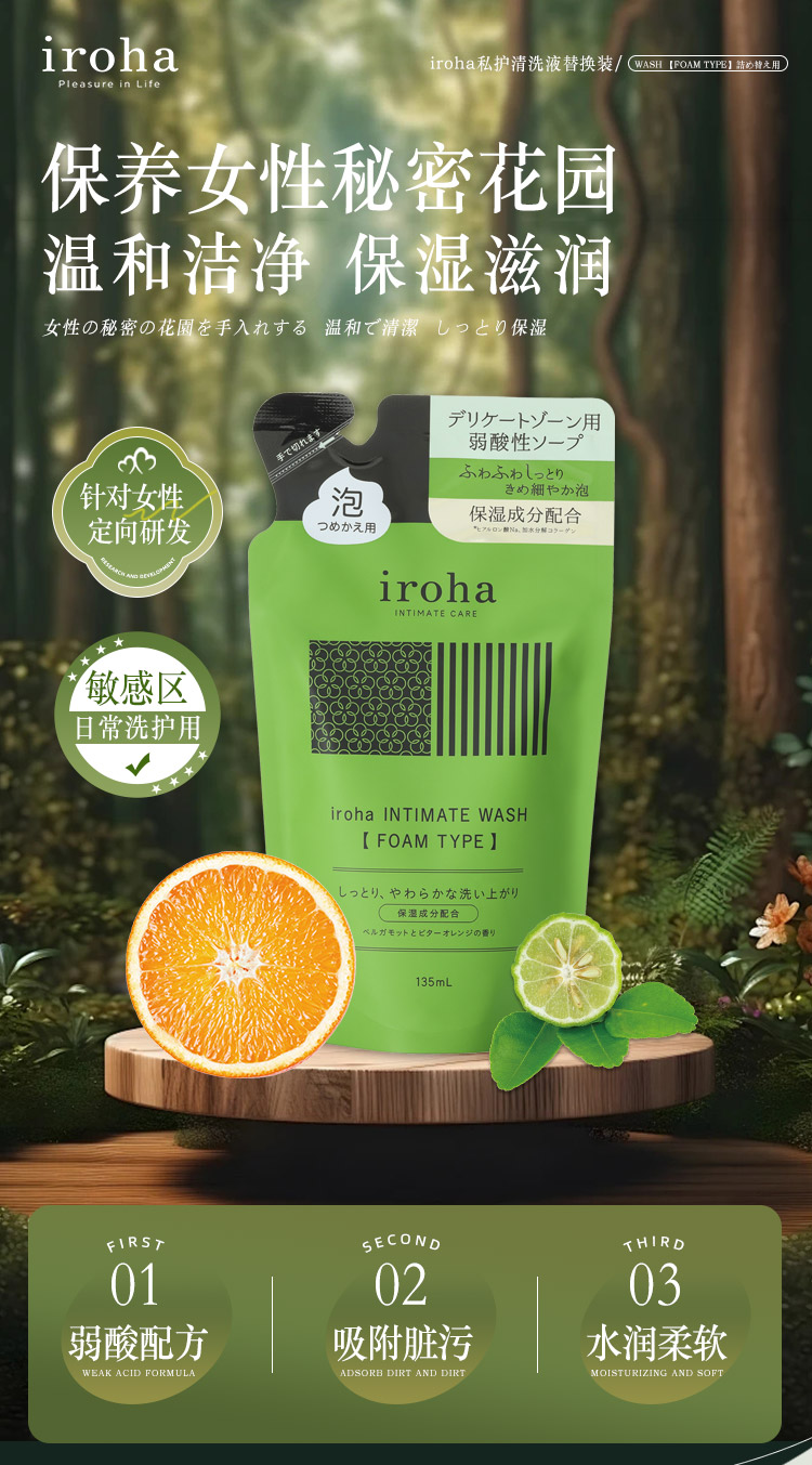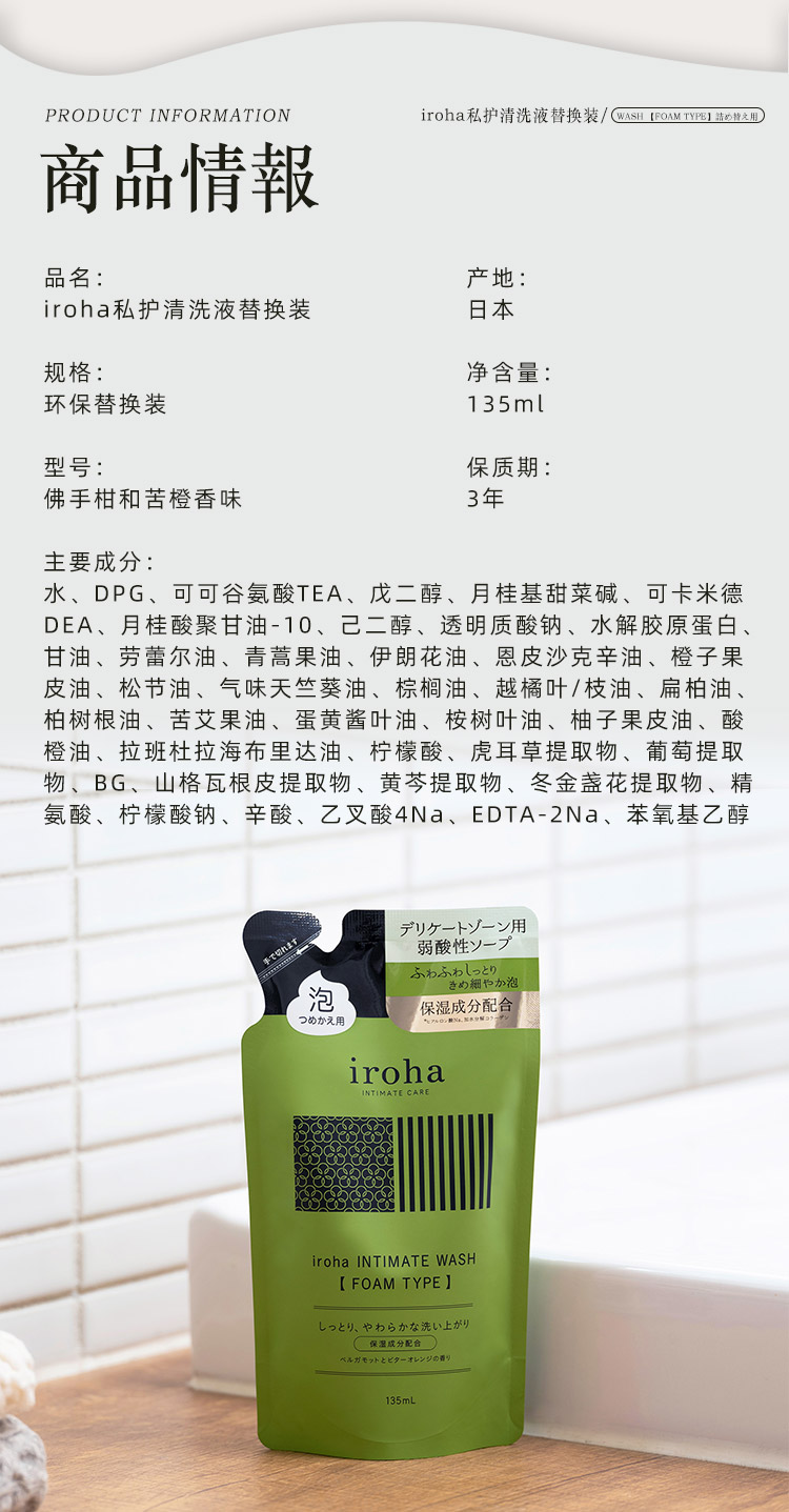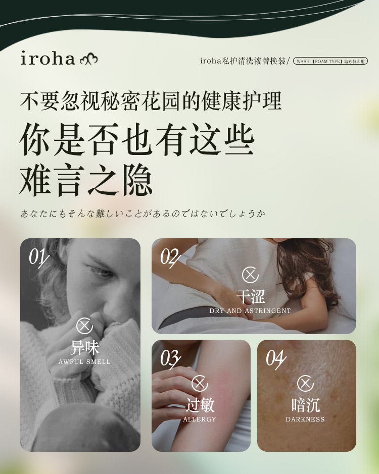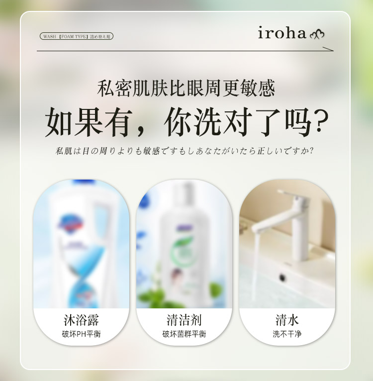 iroha 日本女性私密处护理清洁泡沫替换装祛味洗护液保湿滋润