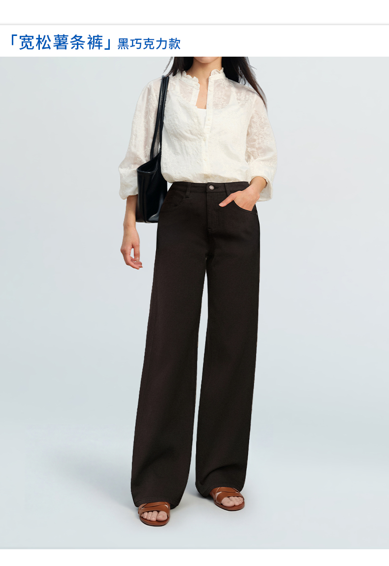 【美拉德薯条裤】simplepieces秋新款SPS牛仔四面弹阔腿拖地裤女
