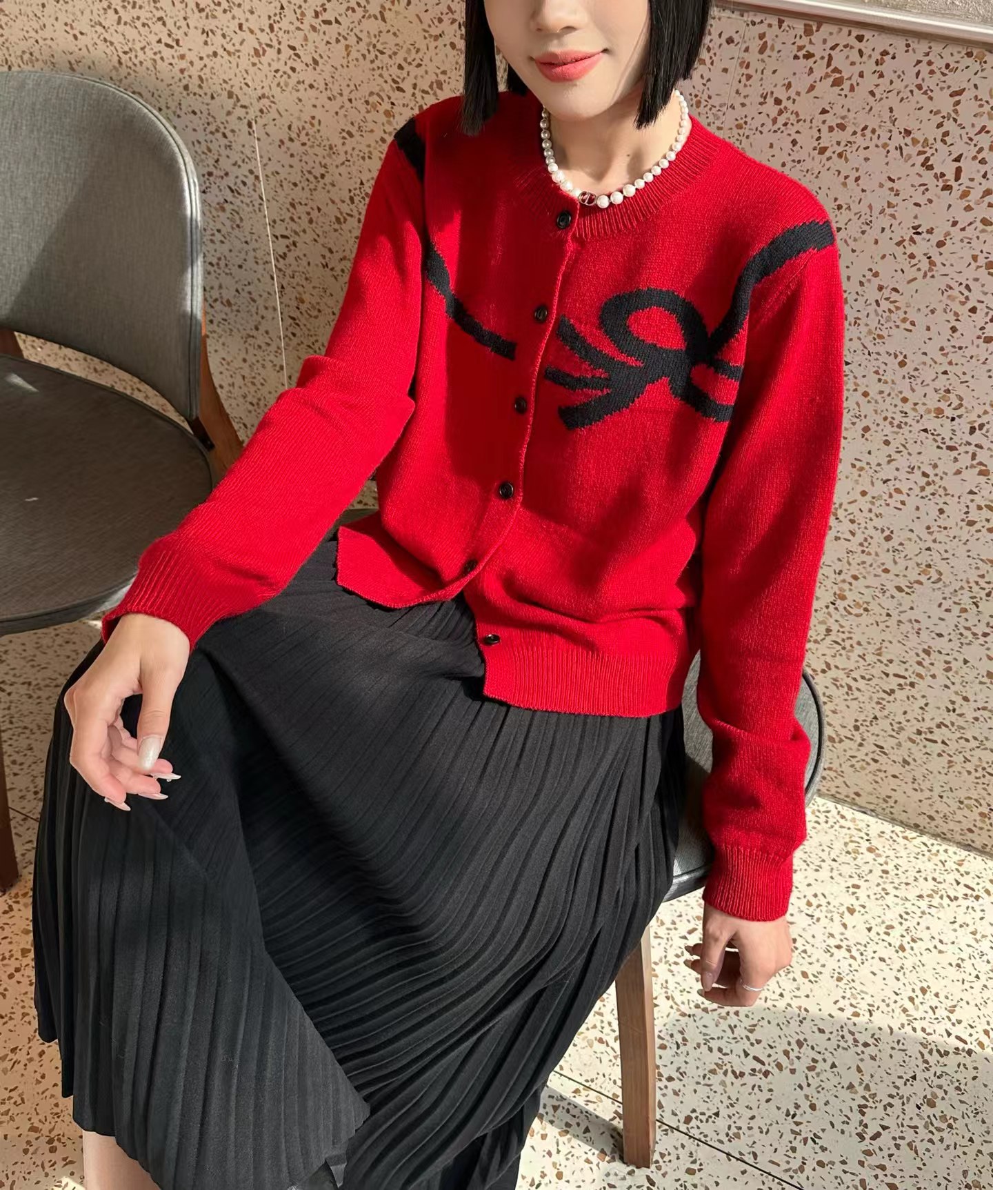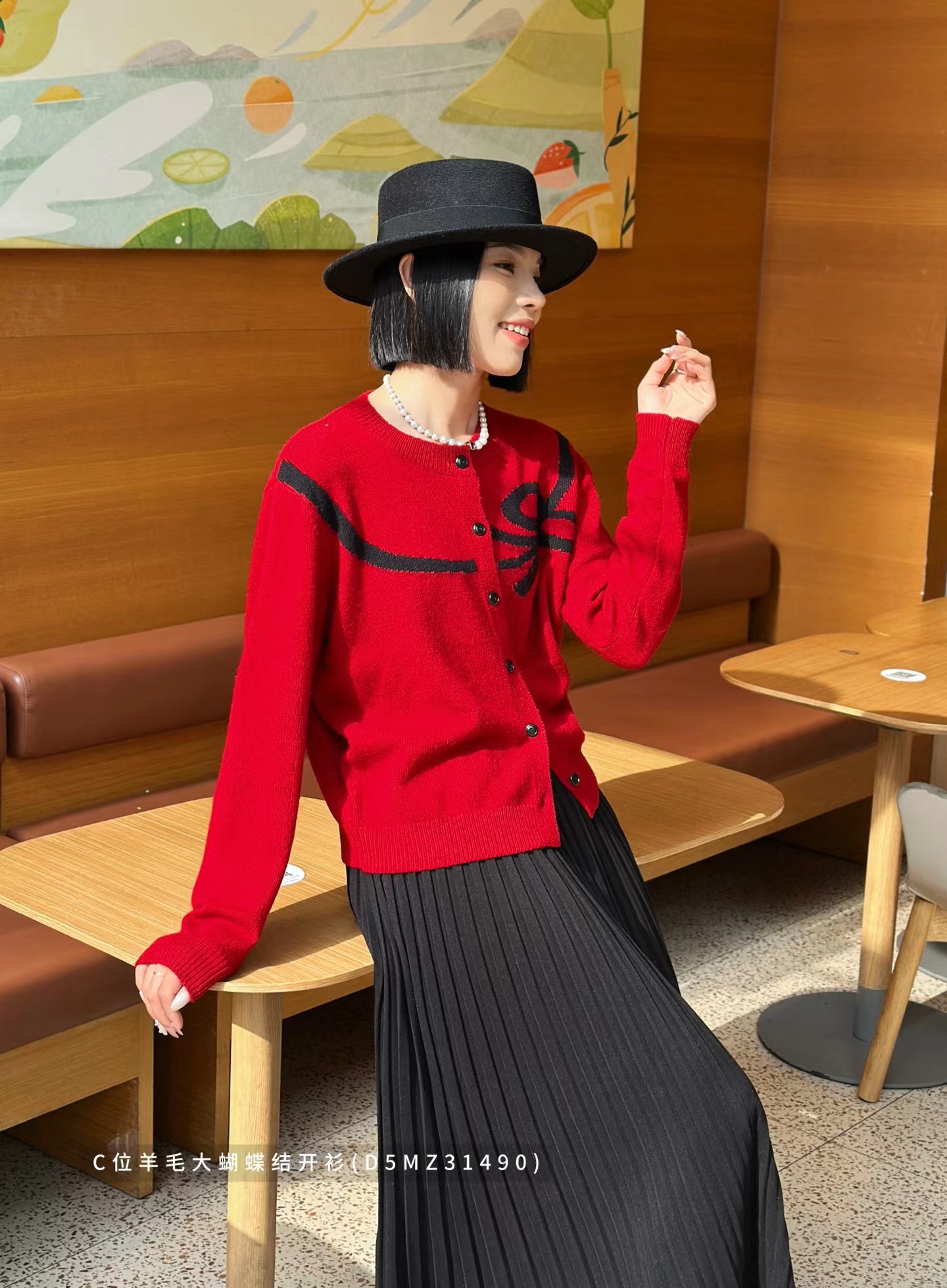 D5MZ31490#C位羊毛大蝴蝶结开衫