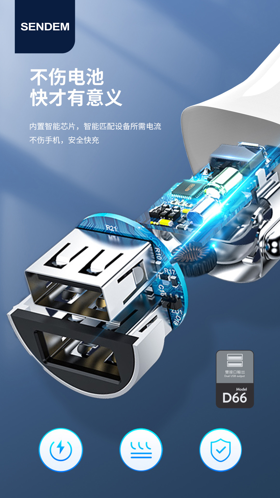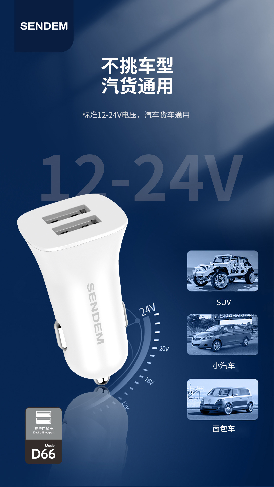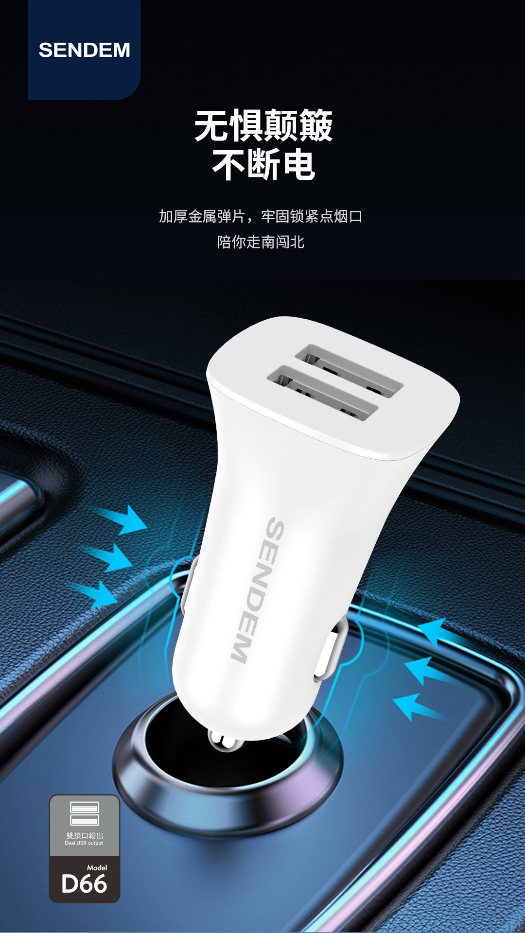 声顿D66车充--3.4A双usb车载充电器