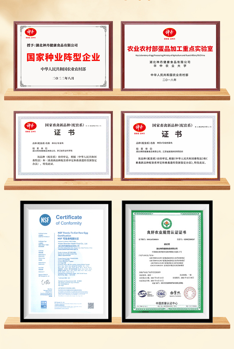 湖北神丹健康食品有限公司,中国实力雄厚的蛋产品加工企业,年生产、销售各类蛋品数亿枚,是中国目前品种全、销售广的禽蛋研发加工基地。神丹公司以“服务农民,健康人民”为宗旨,以推动中国健康食品发展为己任。