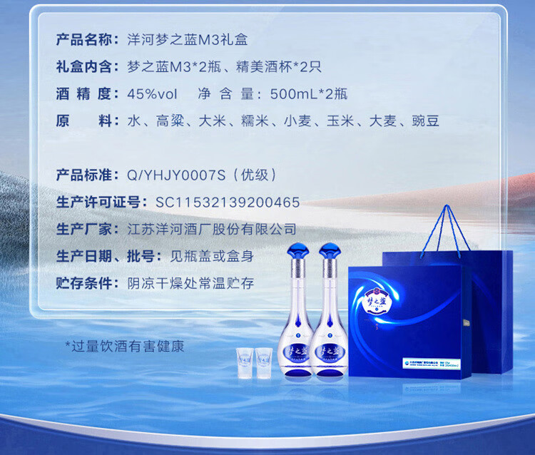 45°/52°梦之蓝M3 500ml/瓶(yh)