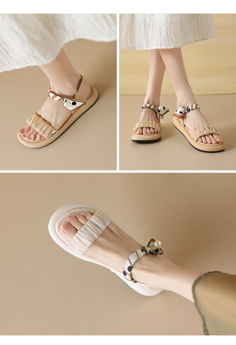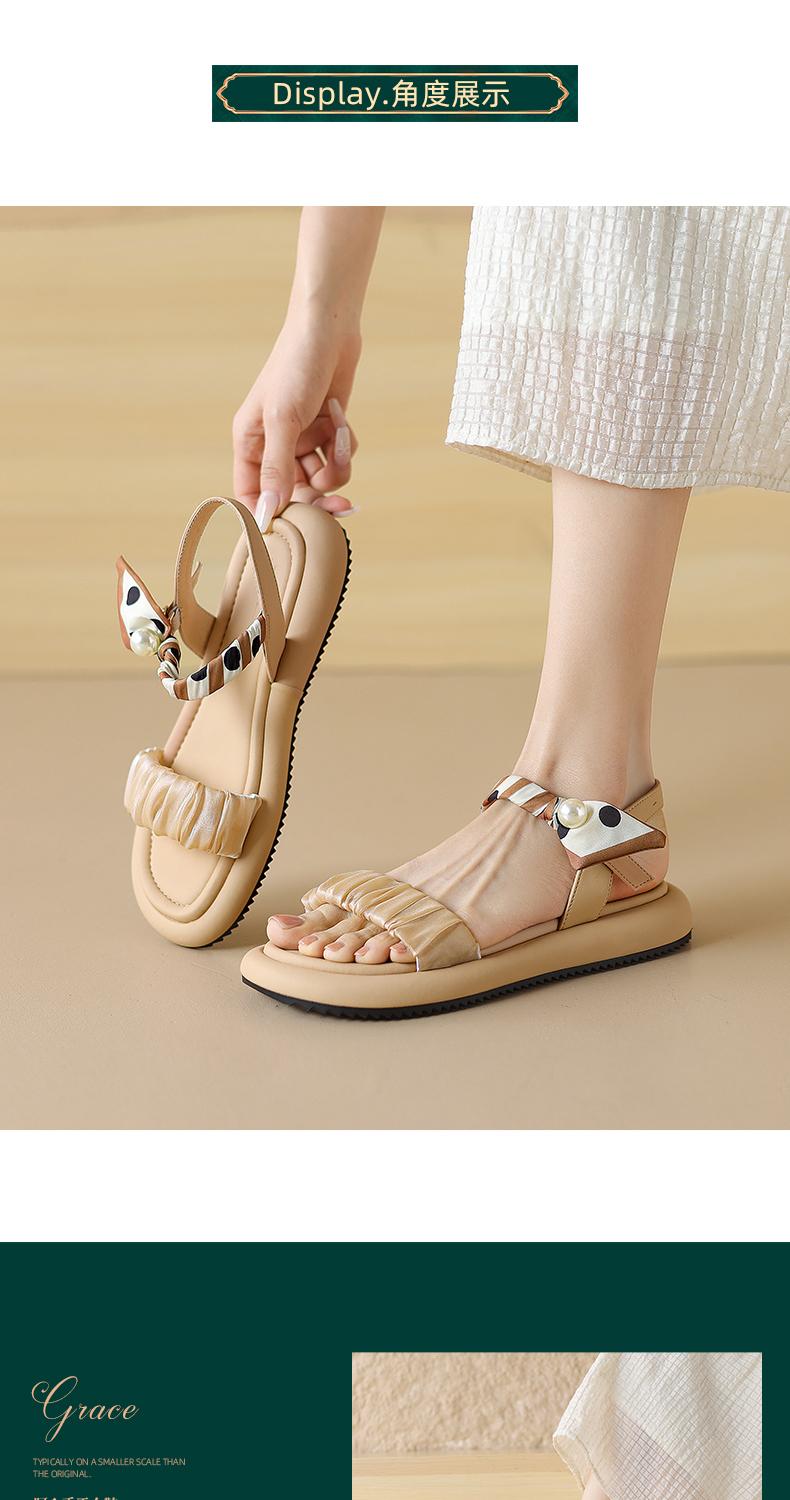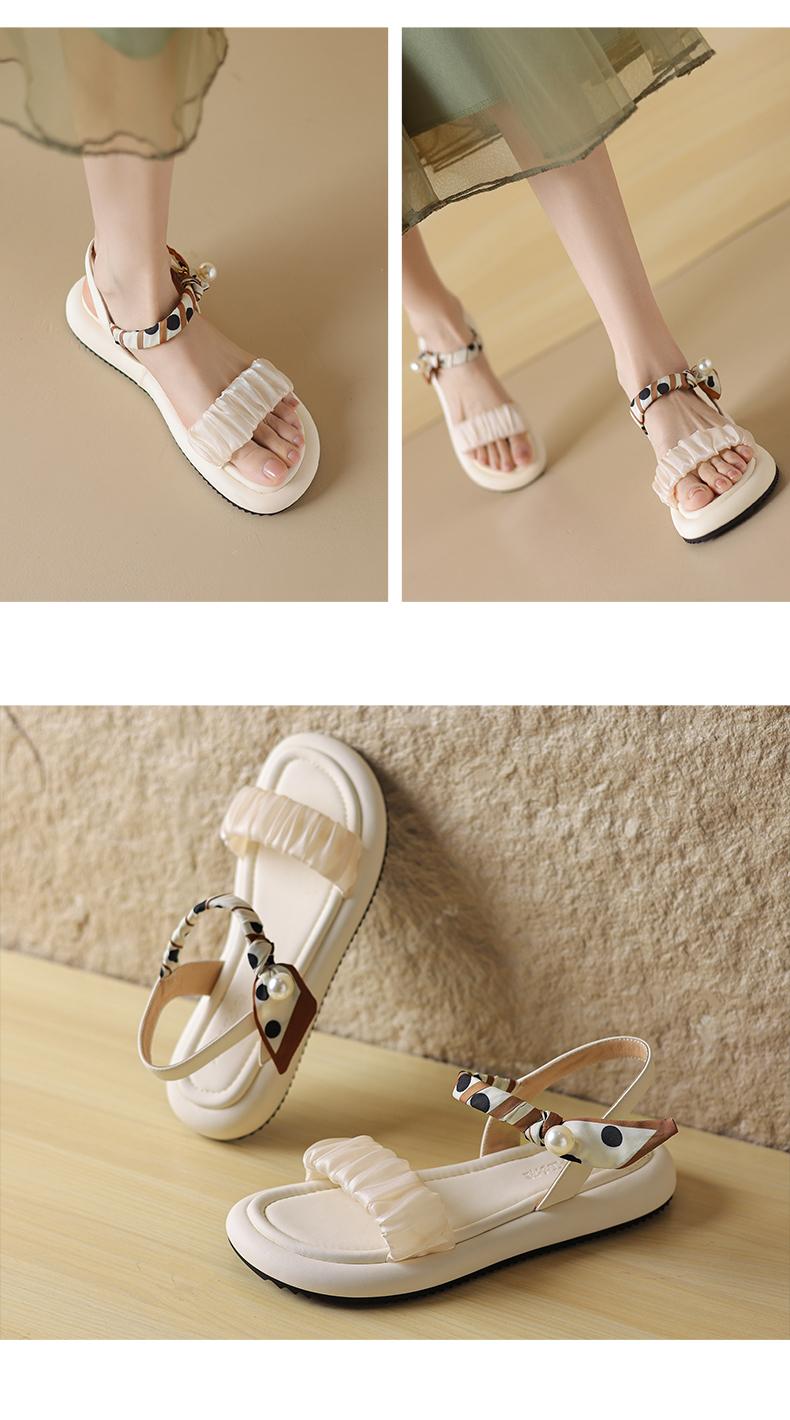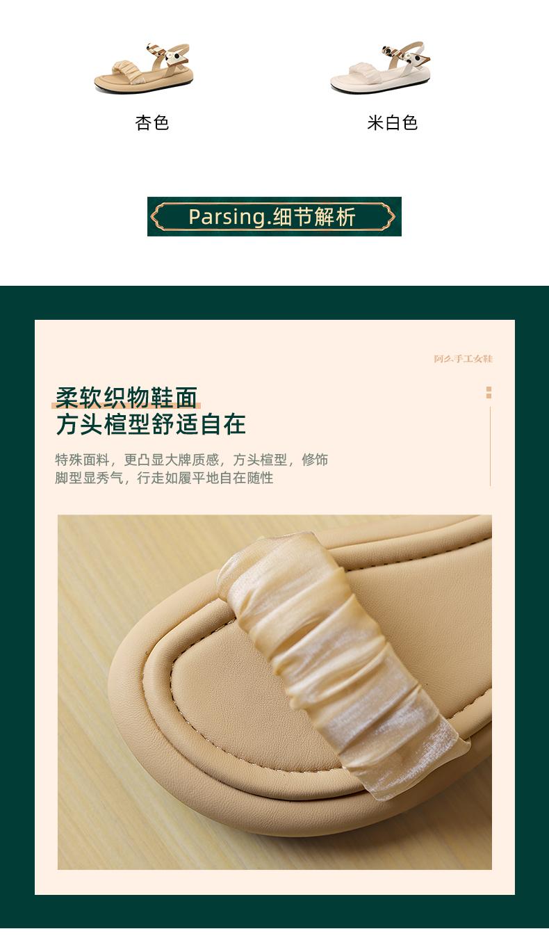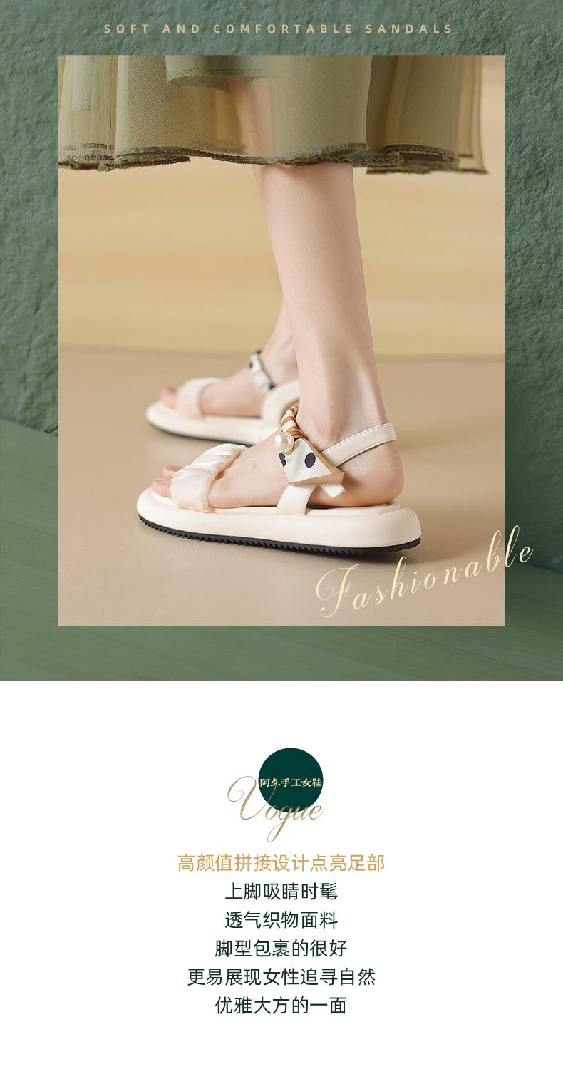 阿么手工女鞋一字带网纱丝带凉鞋夏外穿高级感2025新款软底2.5CM