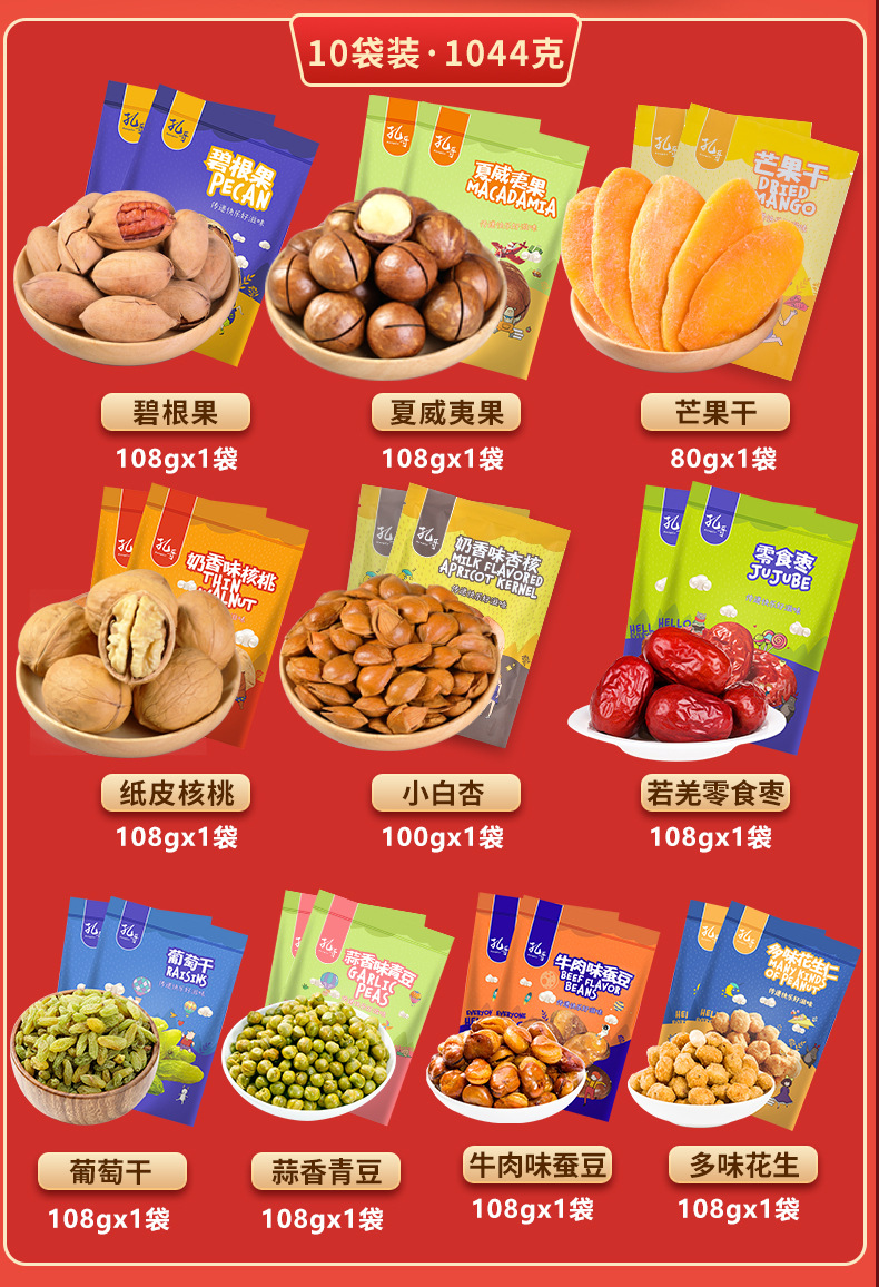 【新年迎旺年❗️旺年坚果礼盒】甄选品质原料制作,夏威夷果/奶香核桃/零食枣/多味花生/芒果干/葡萄干/小白杏/蒜香青豆,春节年货好礼送长辈,下午茶休闲小吃零食大礼包L