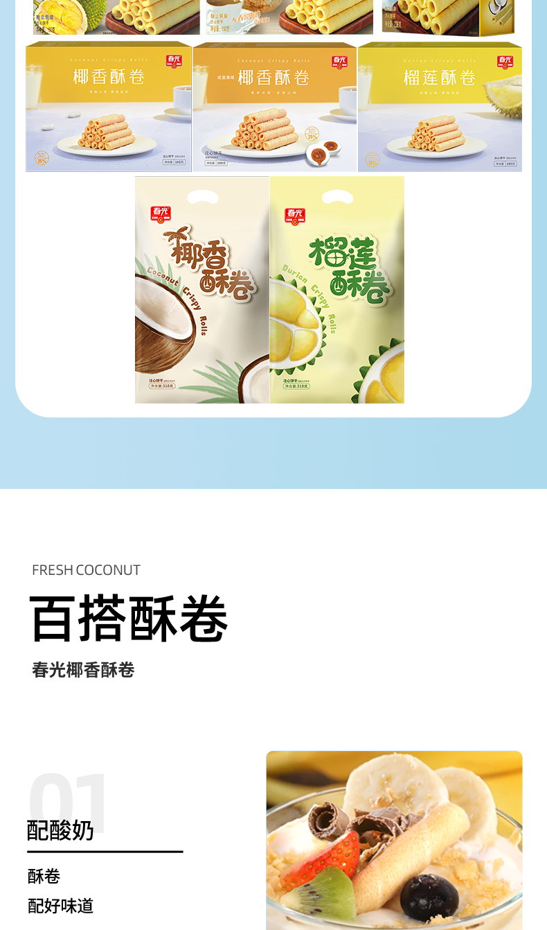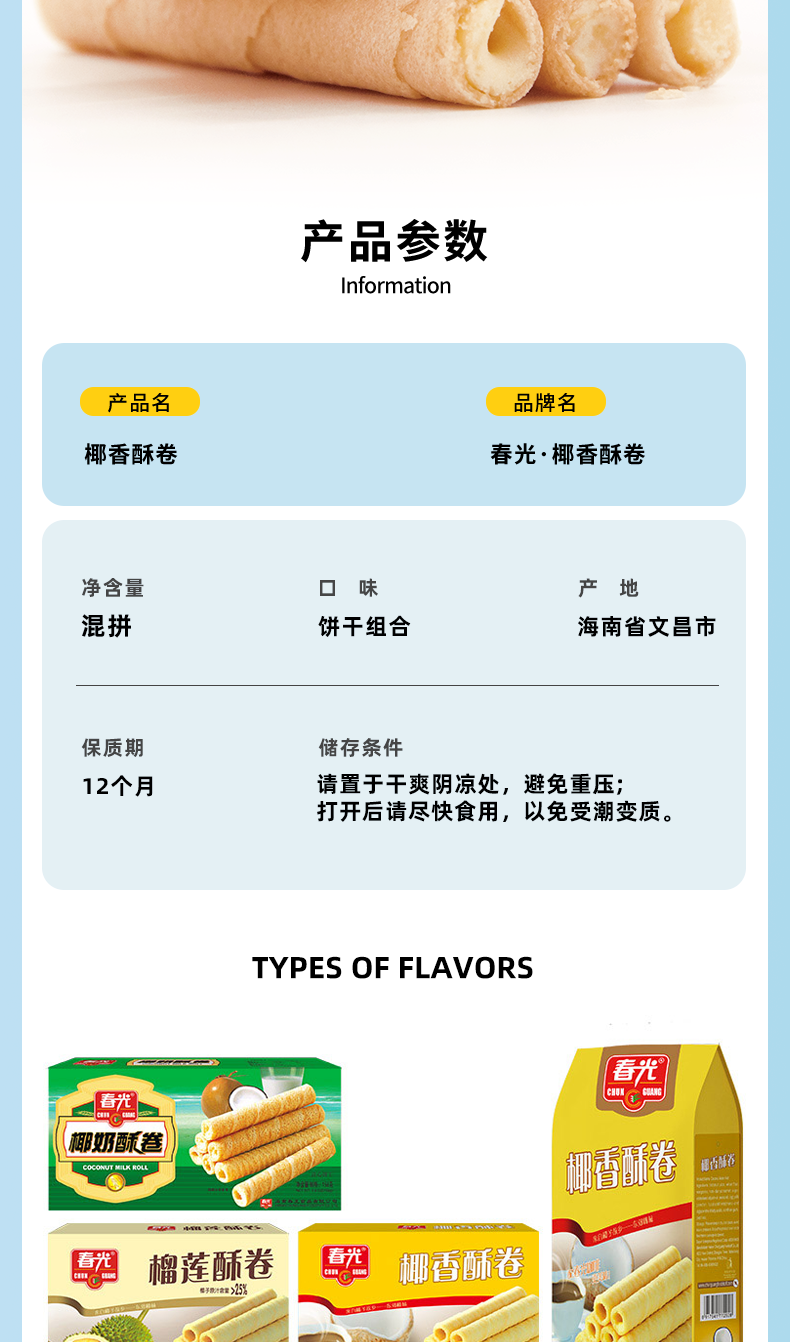 椰香酥卷 (椰子味/榴莲味) 休闲饼干