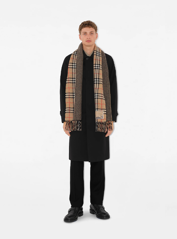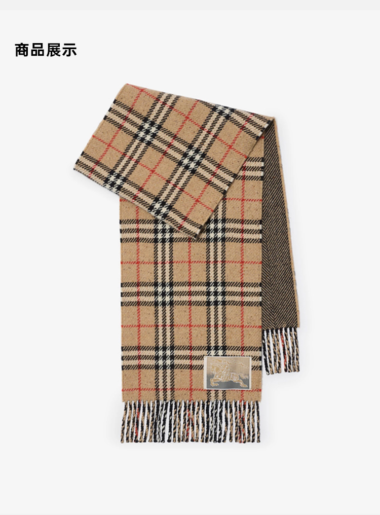 BURBERRY 巴宝莉 男女通用马术骑士徽标贴花双面格纹羊绒围巾 格子 8099014 B9719