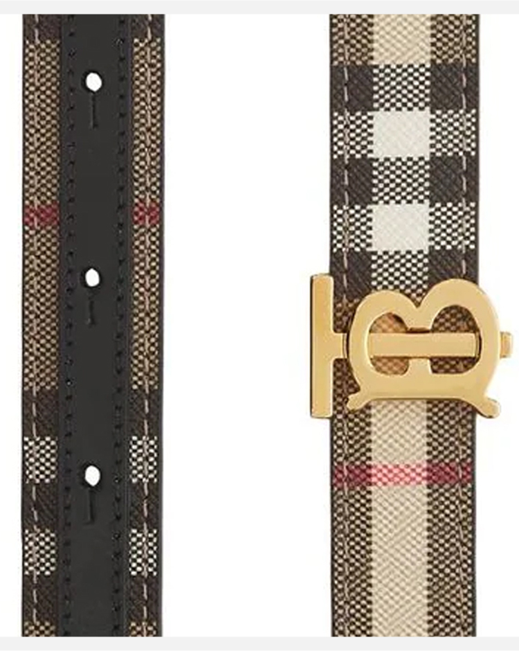 【二】BURBERRY 巴宝莉 女士格纹拼皮革双面两用 TB 专属标识腰带 格子 8062349 A8900