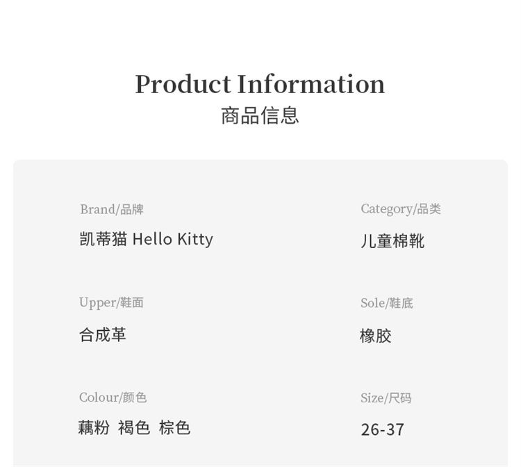 hellokitty童鞋冬季凯蒂猫儿童棉靴26-37码 K4546831