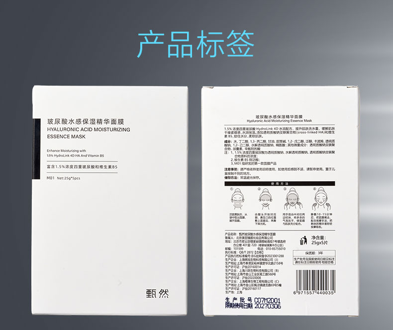 sy甄然玻尿酸水感保湿精华面膜5片/盒*2盒