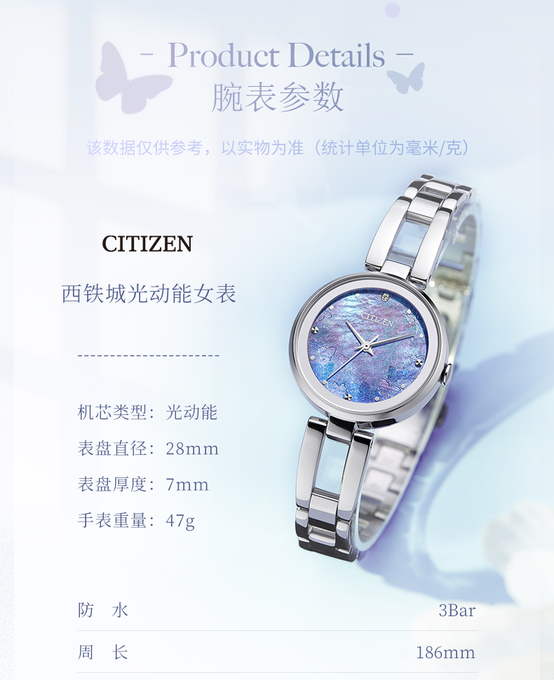西铁城/CITIZEN不锈钢简约时尚光动能女表EM0801-85N