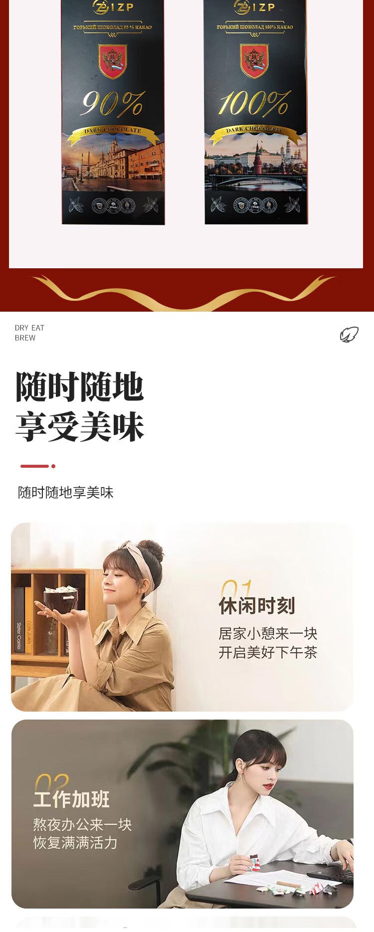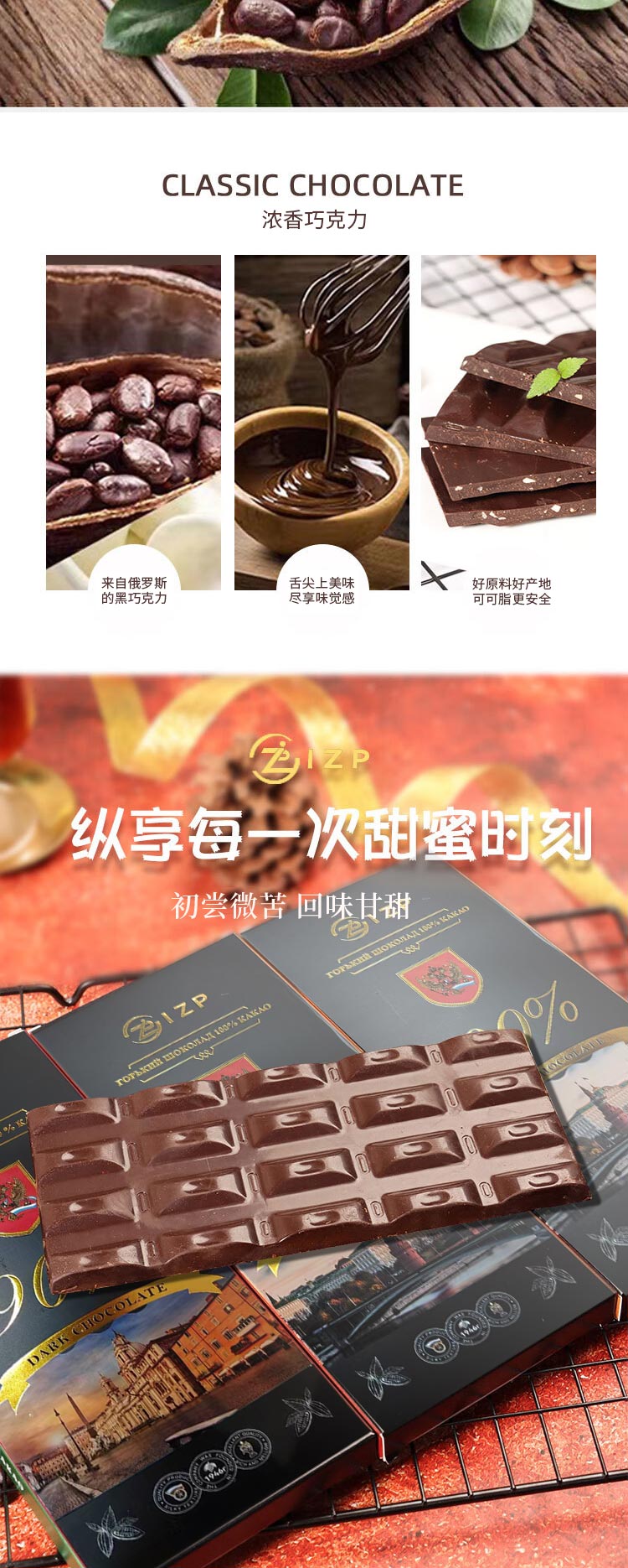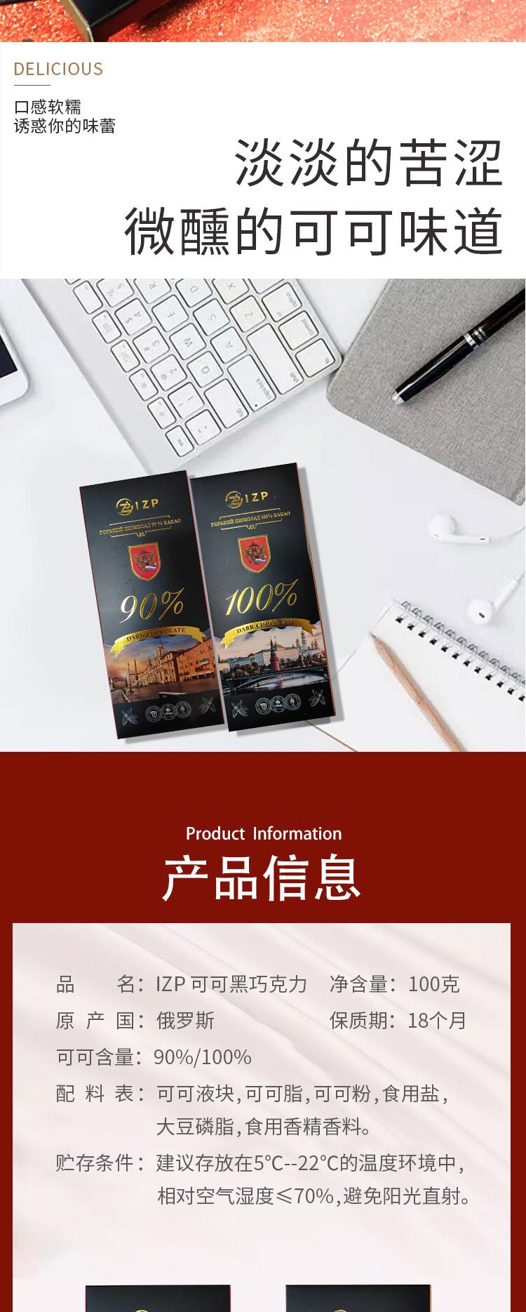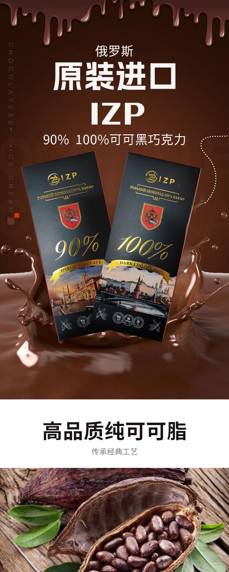 俄罗斯进口IZP90%/100%可可黑巧克力100g